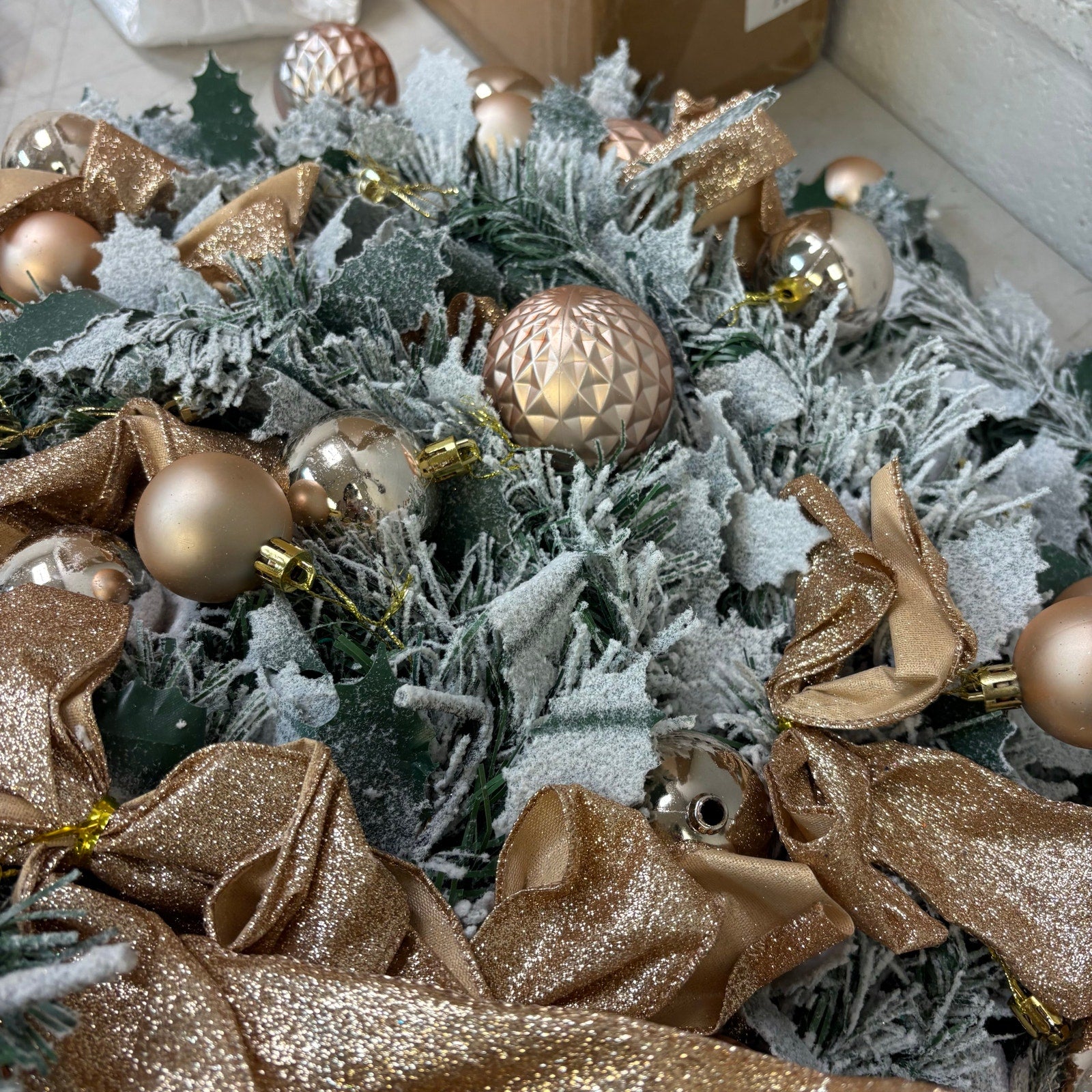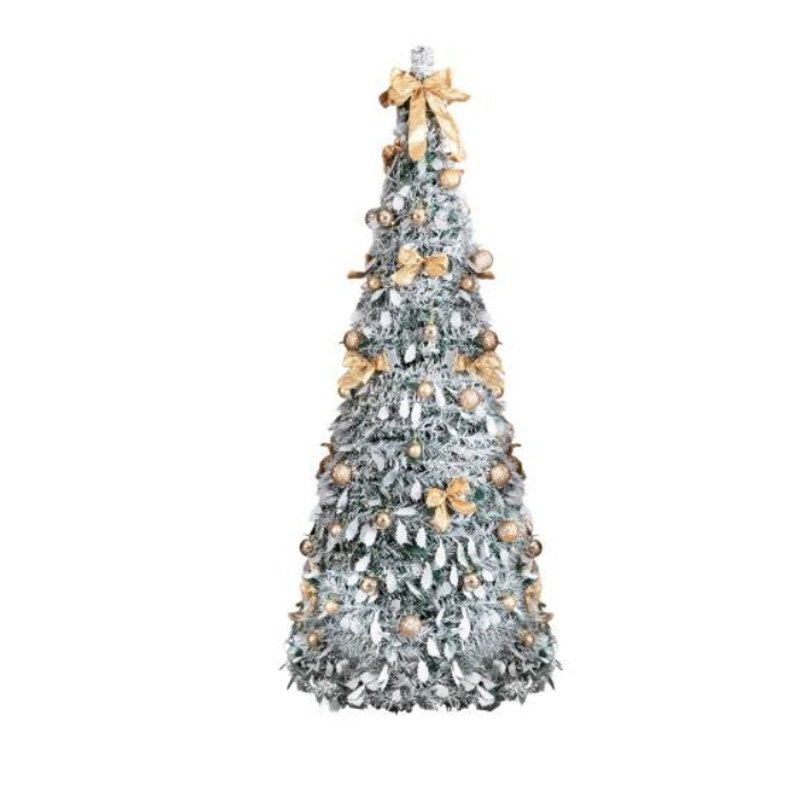6FT Snow Flocked Pre-lit Artificial Christmas Tree, Pop Up, w Lights & Ornaments