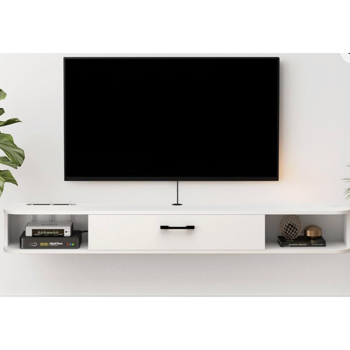 Bixiaomei Wall Mounted Floating TV Unit with Shelves & Door (55") - White