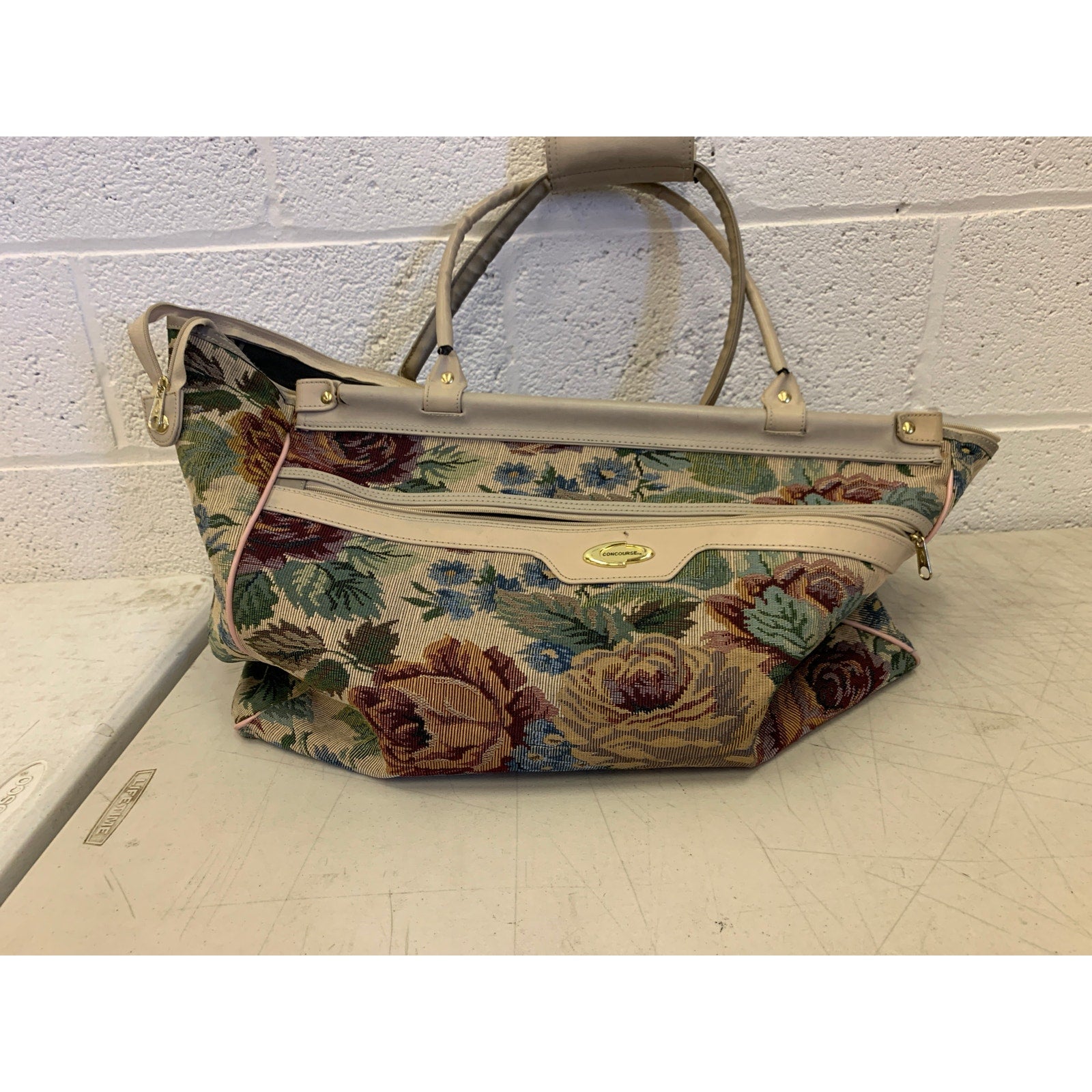 Concourse Tote Bag Floral Dual Handle with Front Zip Pocket 33 x 27 x 16 inches