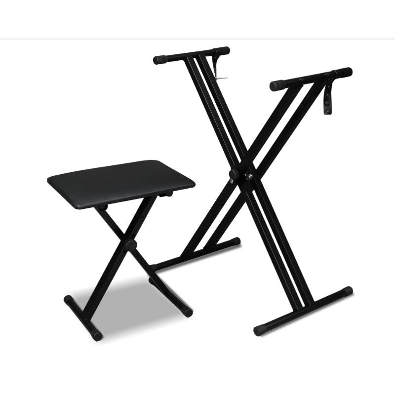 Double X Keyboard Stand and Bench Set, Adjustable Height with Lockable Straps