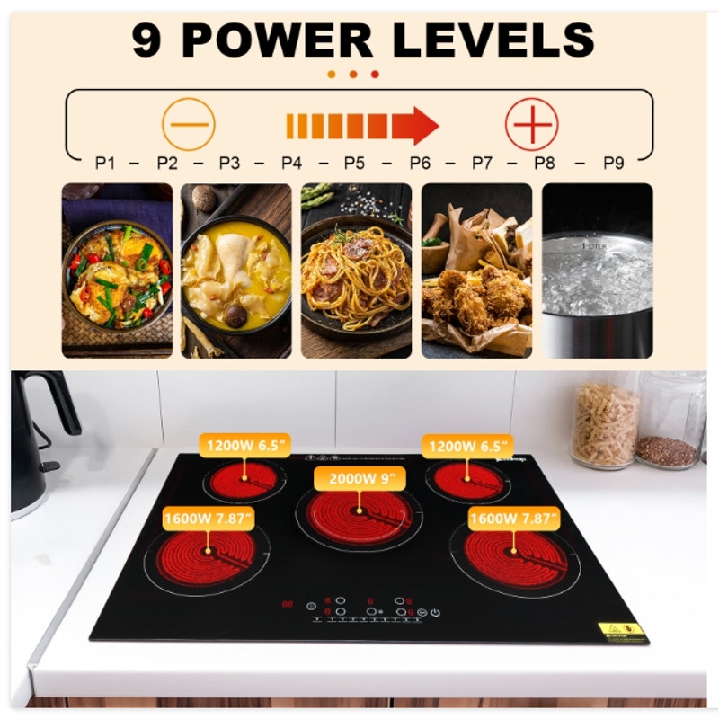 Electric Cooktop 30" Ceramic Stove 5 Burners Built-in Stove Top Hot Plate - DT5