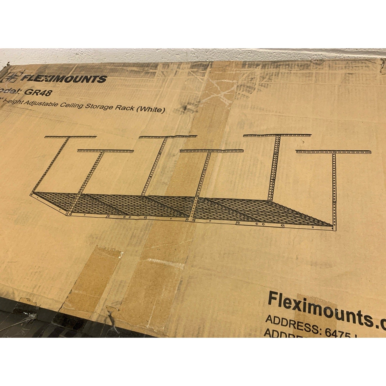 FLEXIMOUNTS 4ftX8ft Heavy Duty Overhead Adjustable Ceiling Storage Rack, White