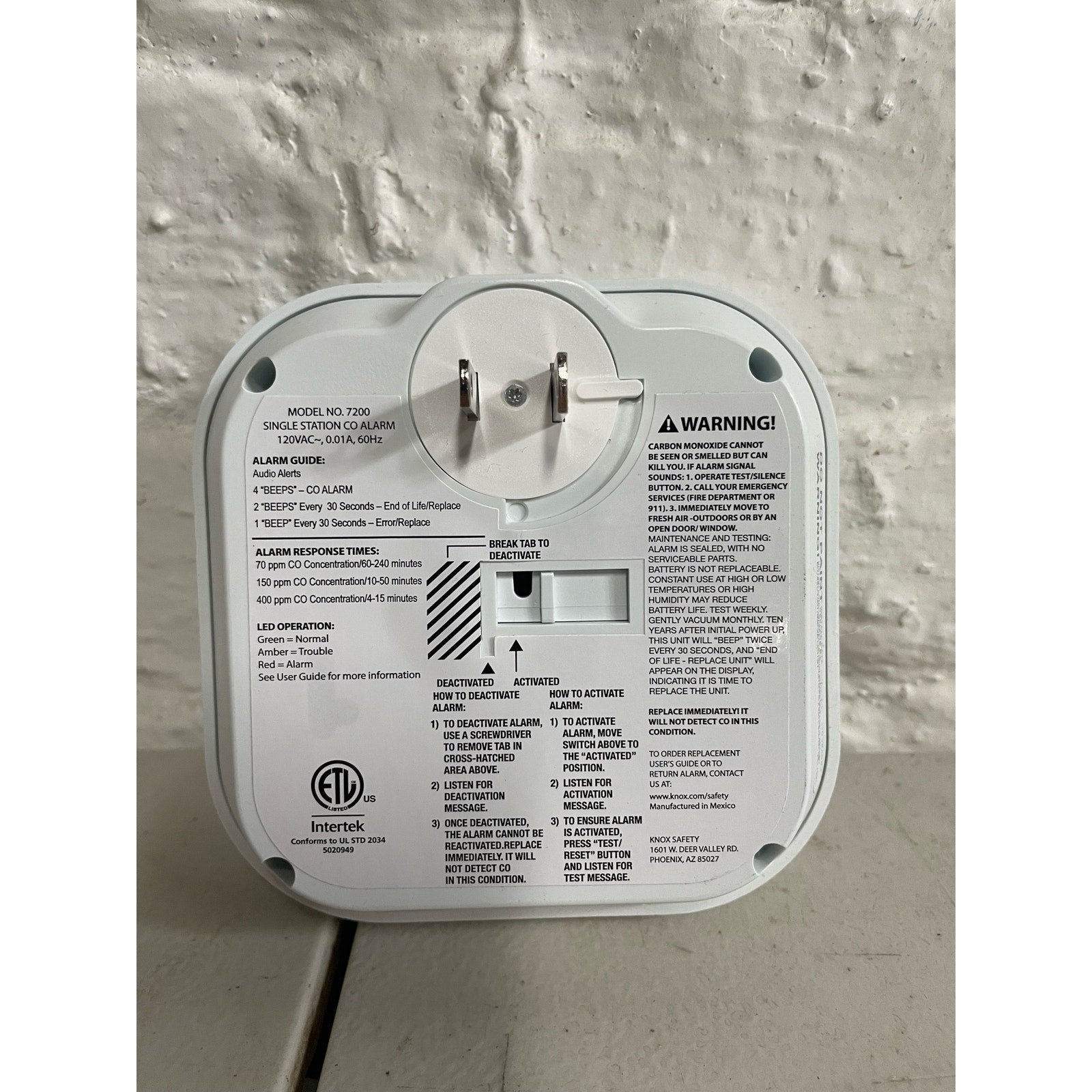 Knox Safety Plugin Carbon Monoxide Detector, Voice Alert & LCD Display