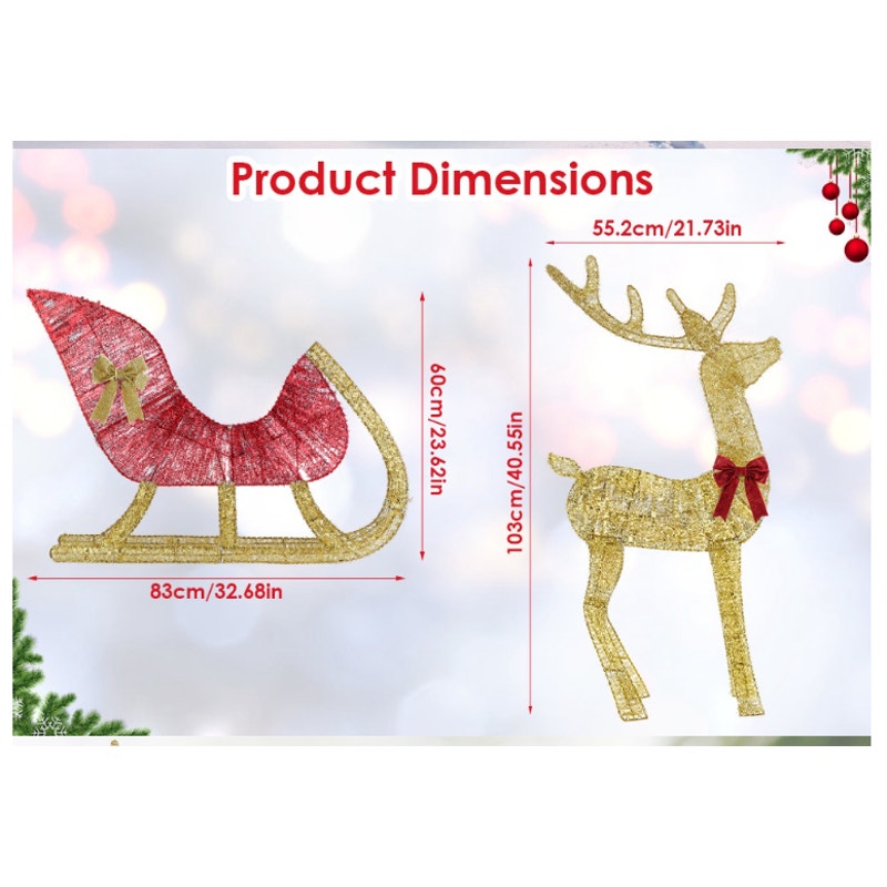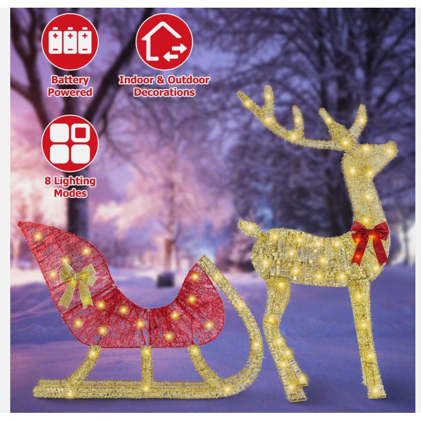 Lighted Christmas Reindeer & Sleigh Decoration, 8-Lighting Modes For Outdoors