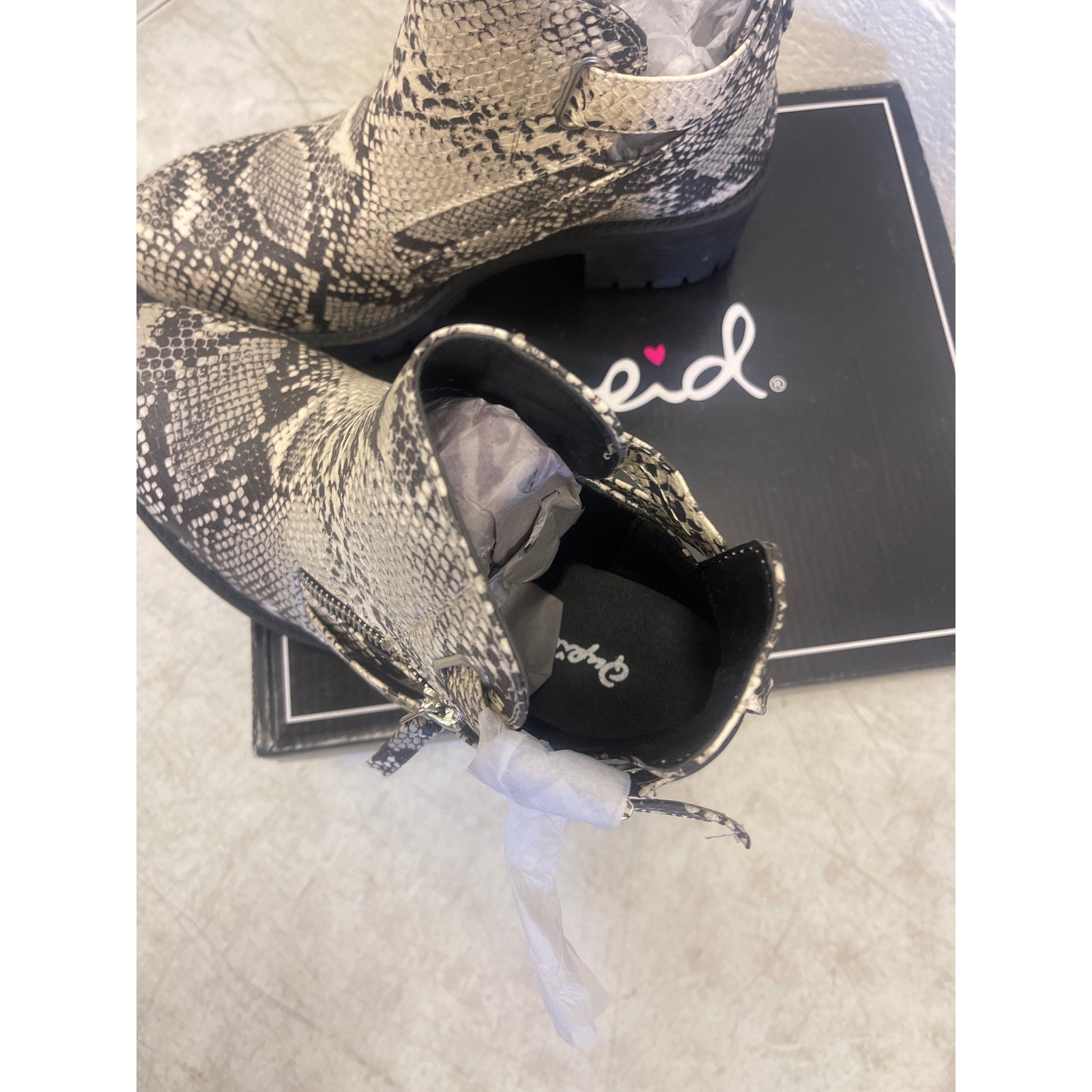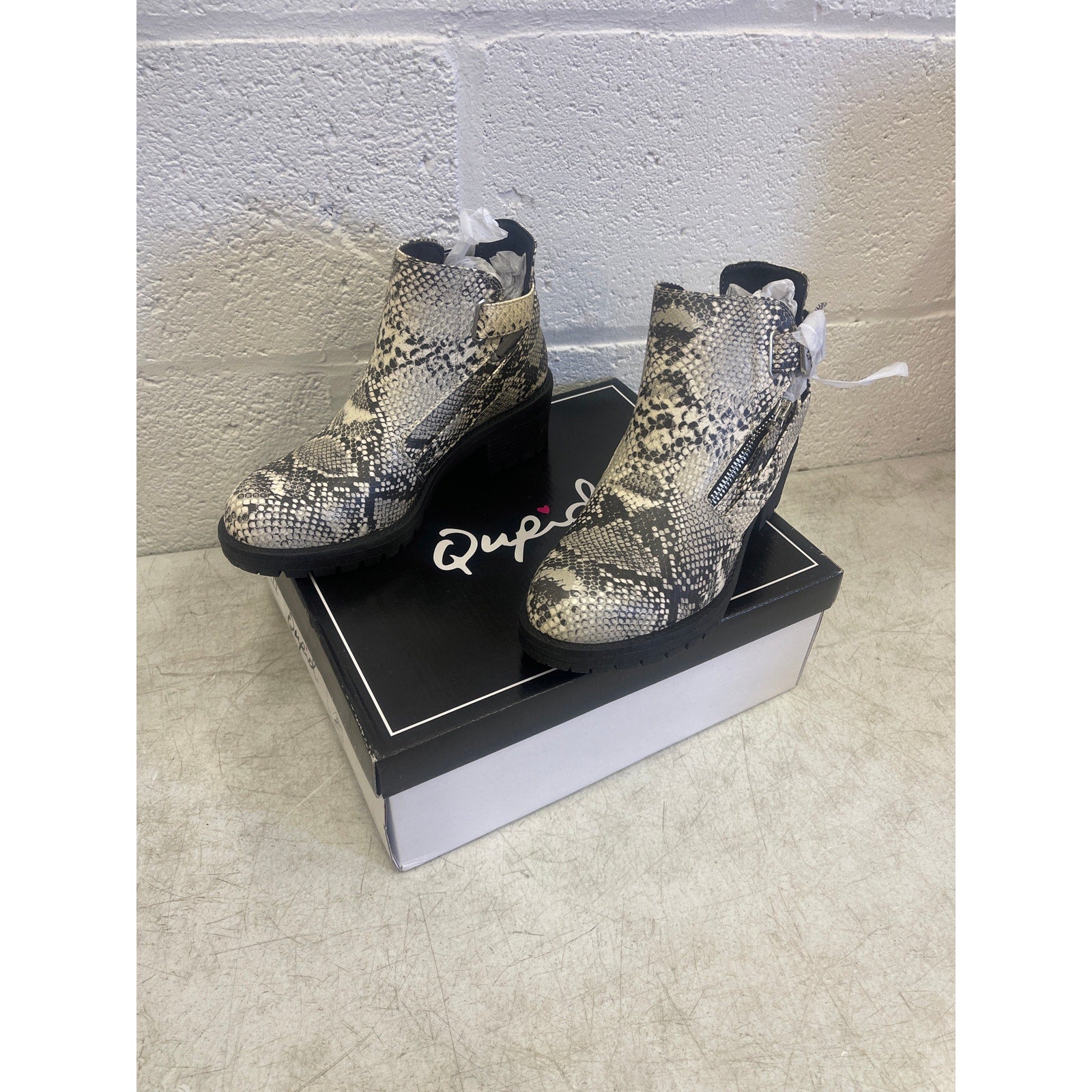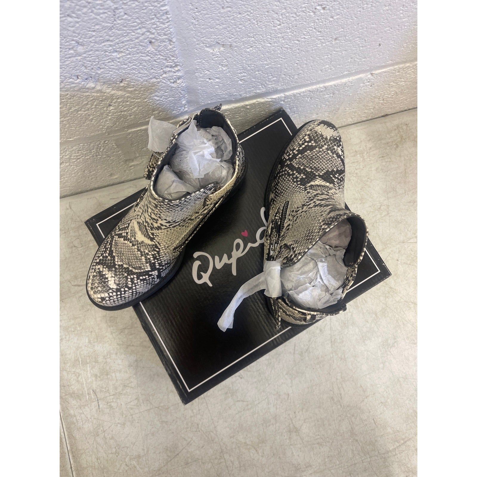 NEW Qupid Snake Leather Boots Tressa-22x Stone/Black Women's Size 6