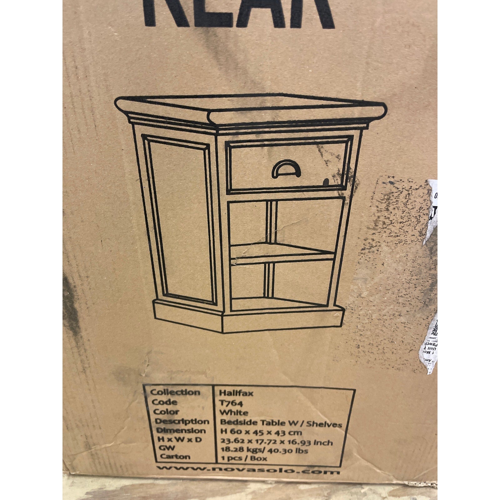 Novasolo Bedside Table w Shelves/ Drawer, Halifax Collection White 23 x 17 x 16"