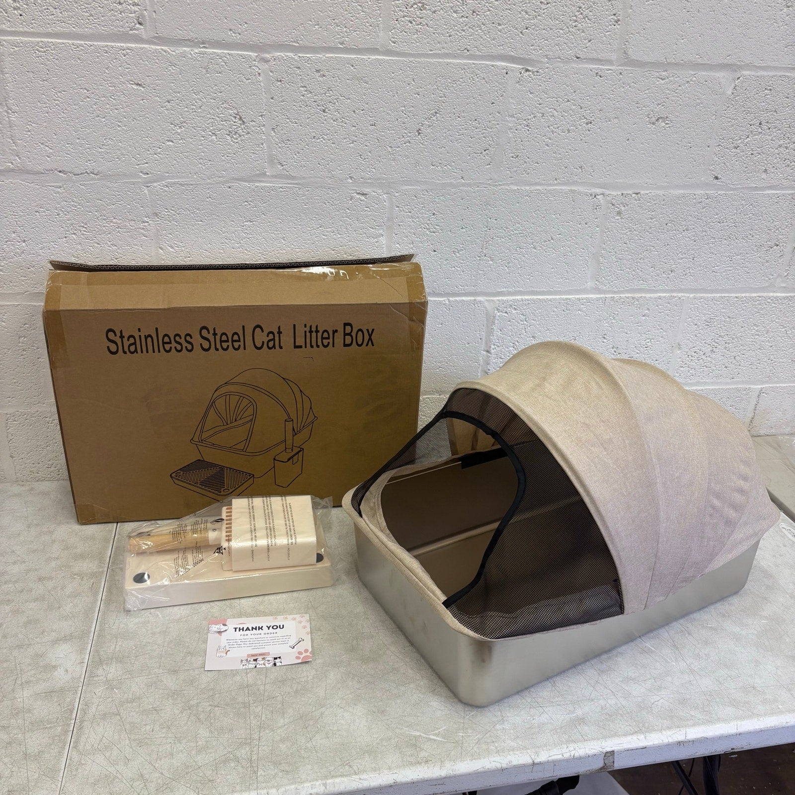 Pacifik Angels Stainless Steel Cat Litter Box w Anti Splash Fabric & Scoop - Tan