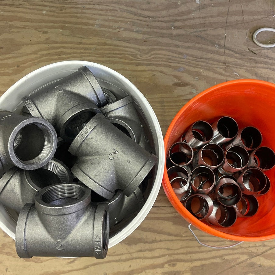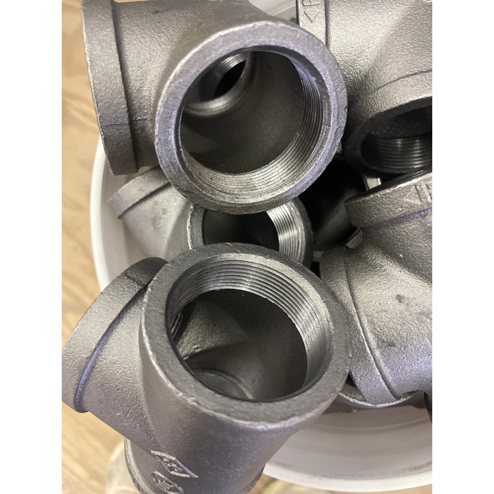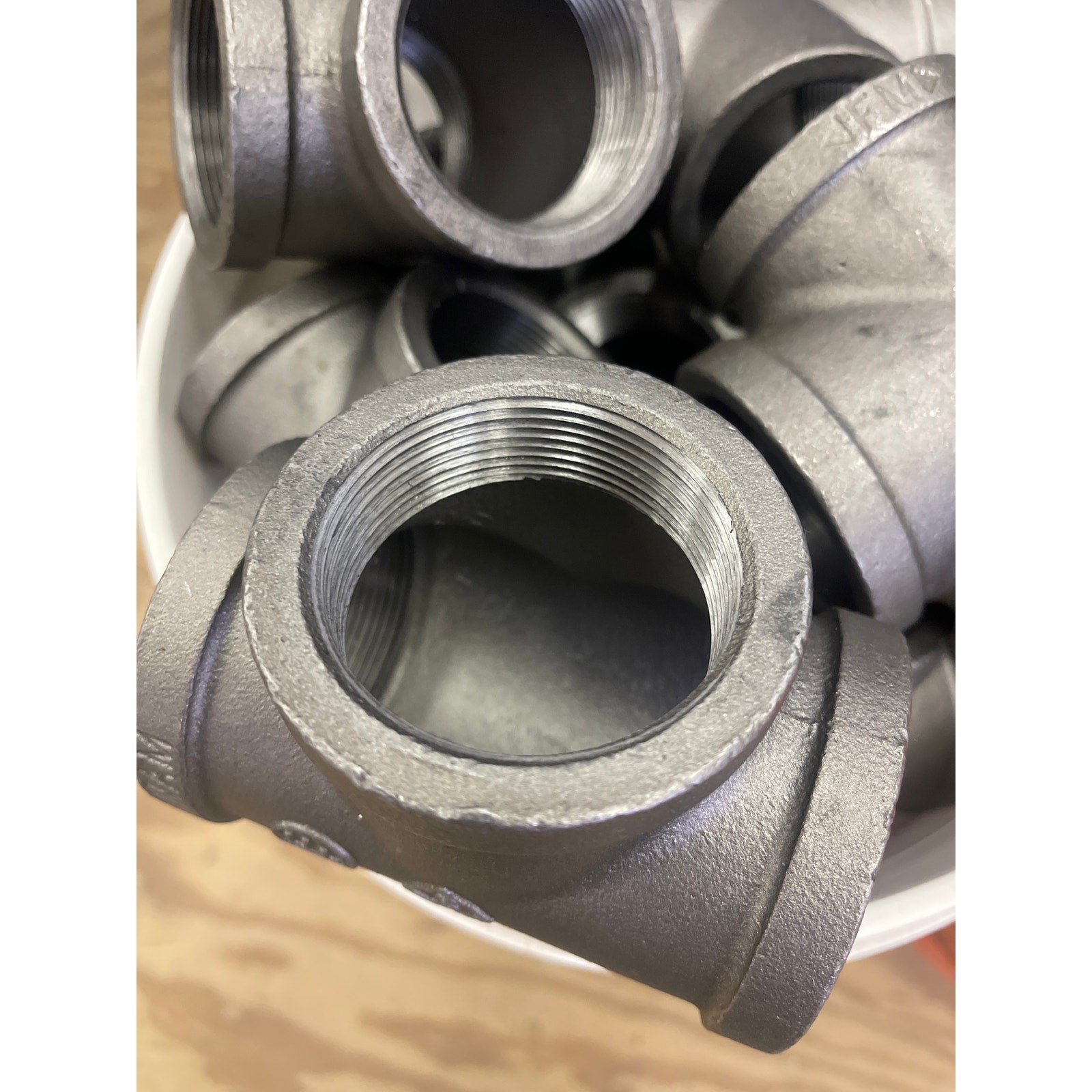 SET-OF-25 2"x2"x2" Black Iron Tee and SET-OF-38 2" Close Stainless Steel Nipple