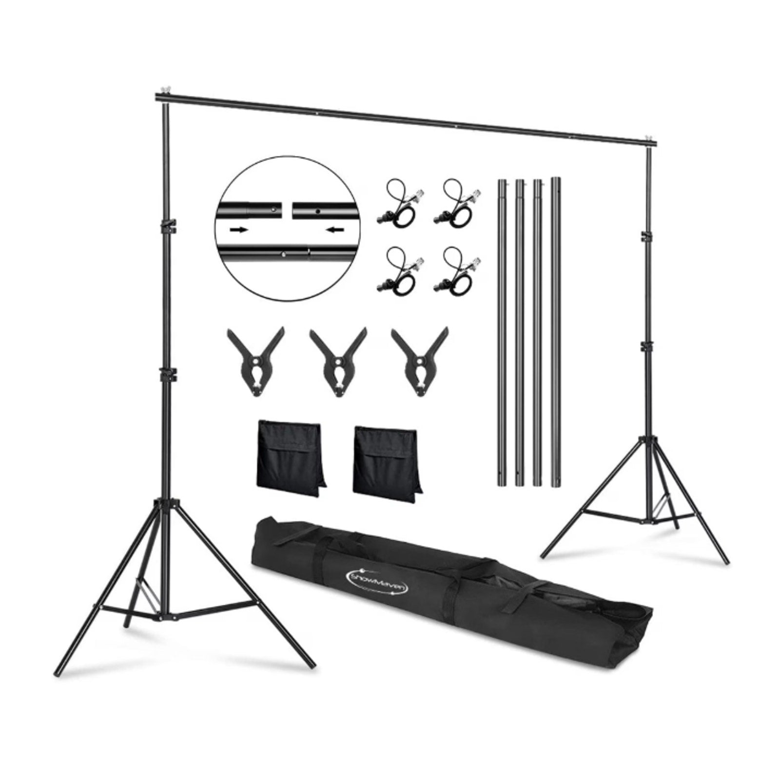 ShowMaven Background Stand 6.5ft H x 10ft W Adjustable Photo Backdrop NO CLIPS