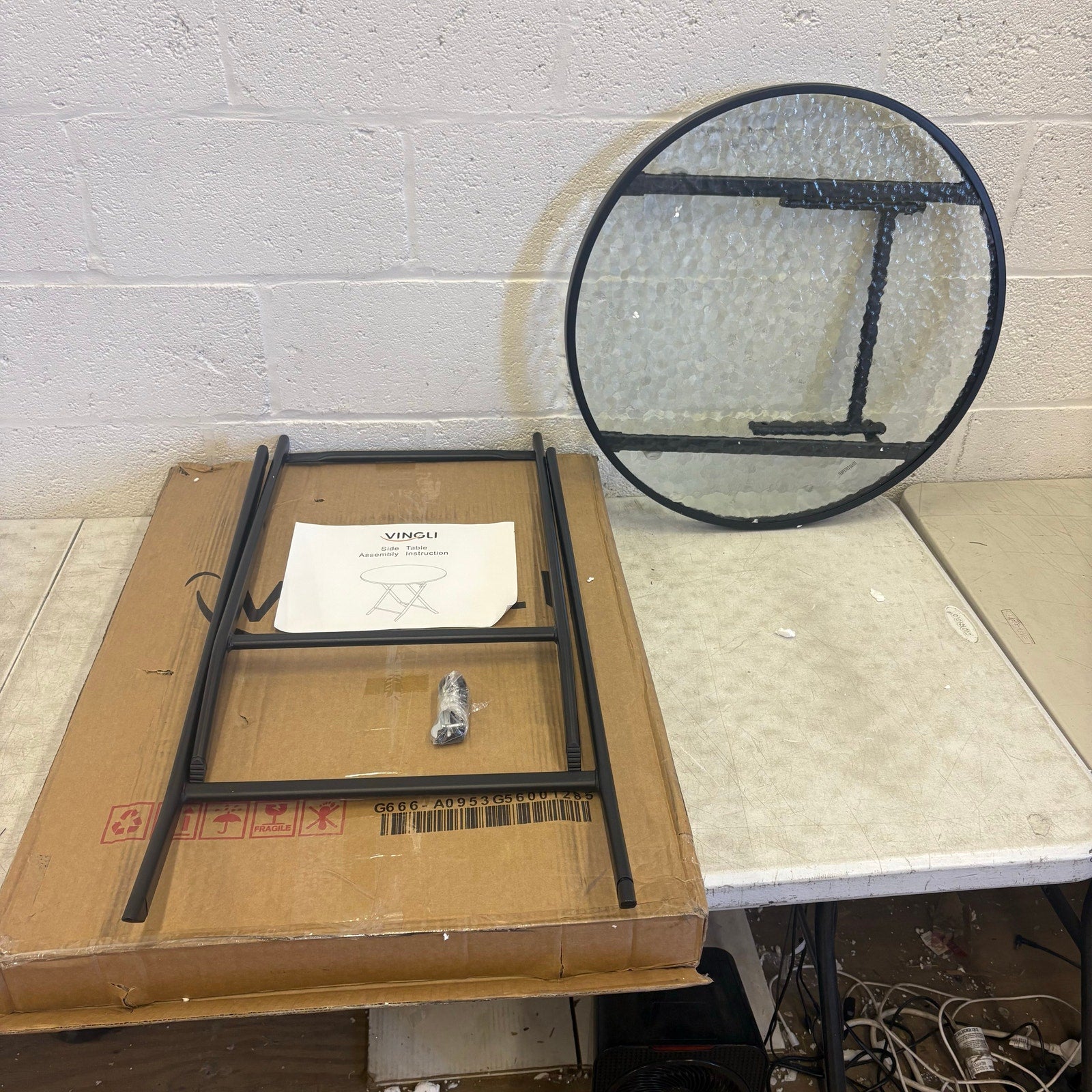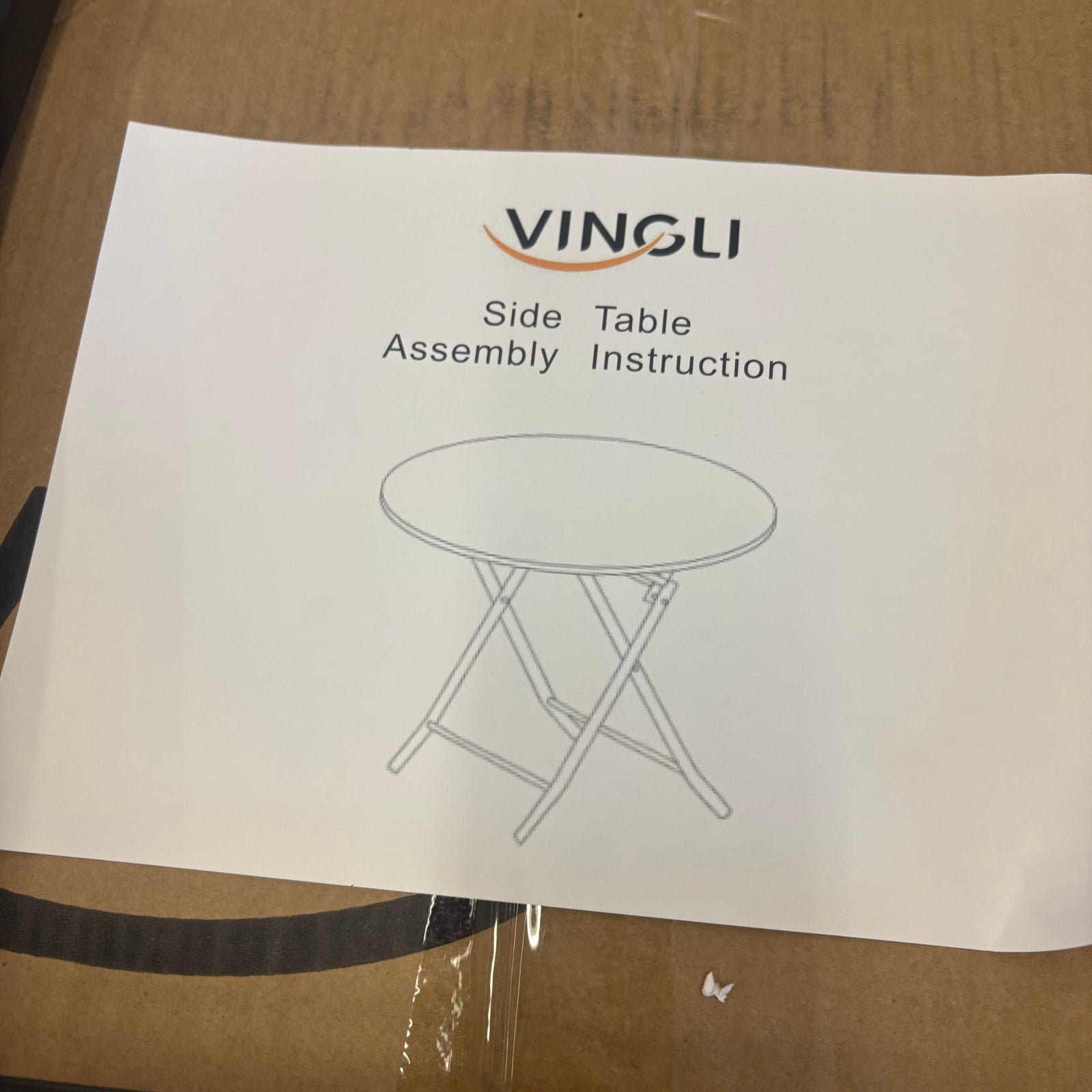 Vingli 24" Tempered Glass Folding Side Table, Round Patio Furniture - Black