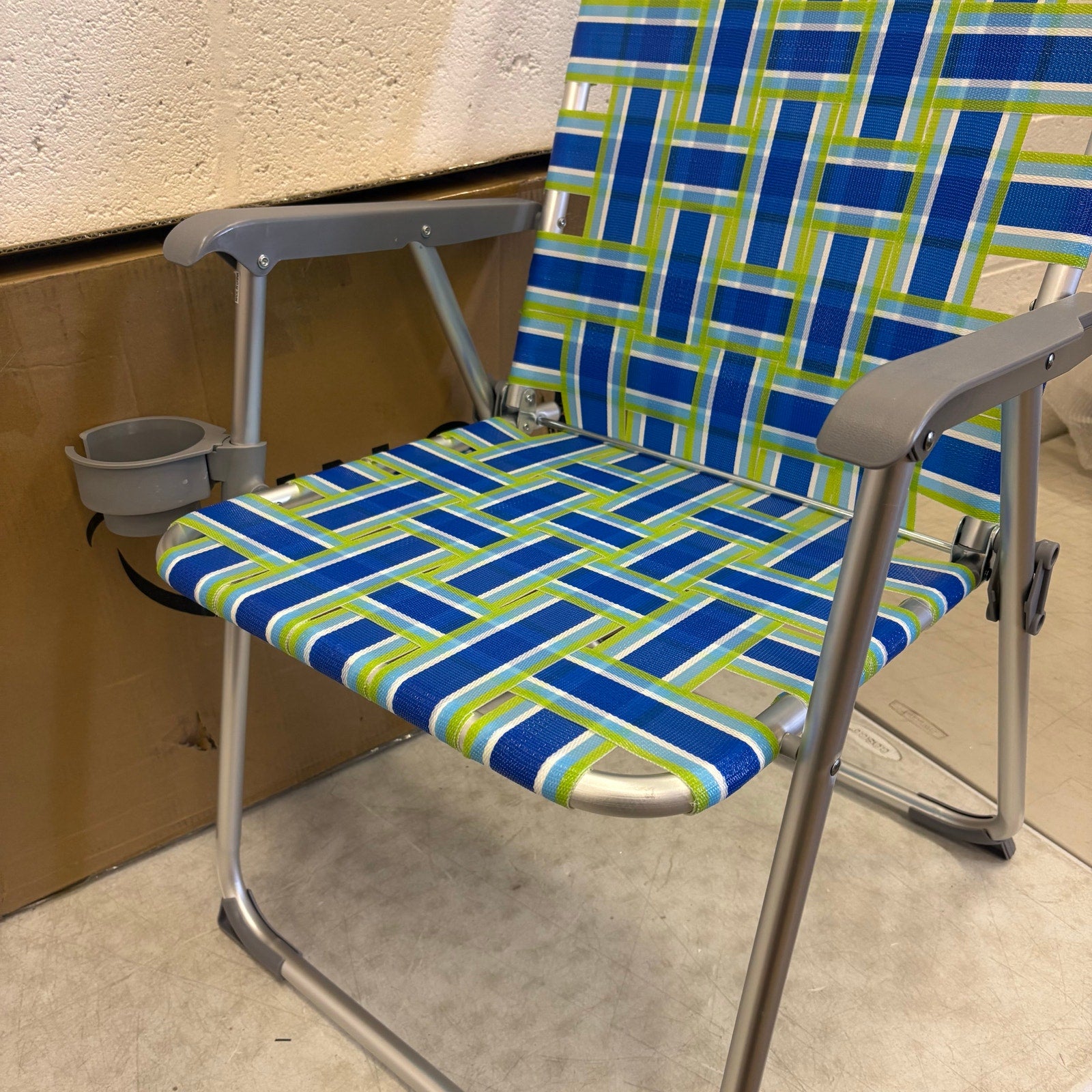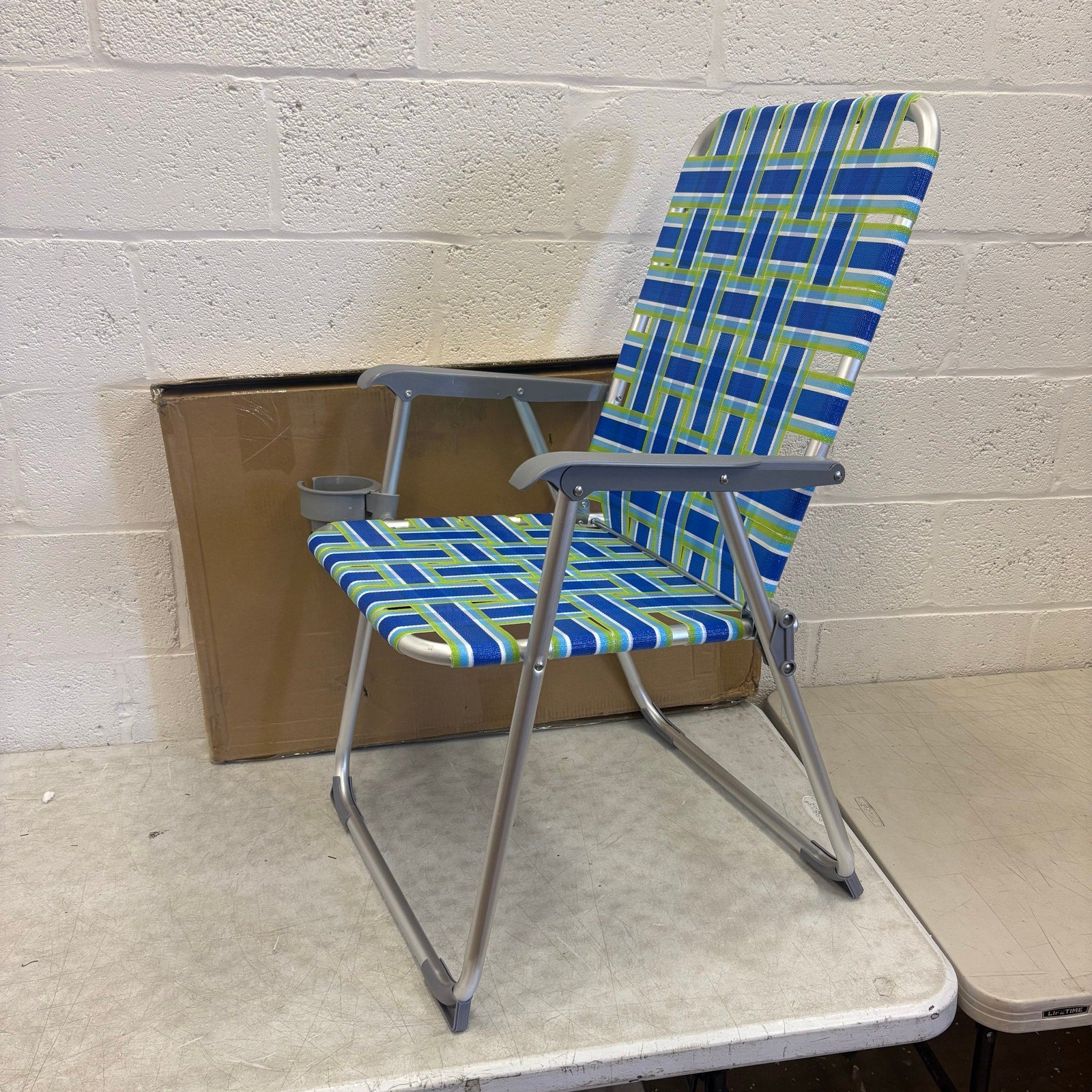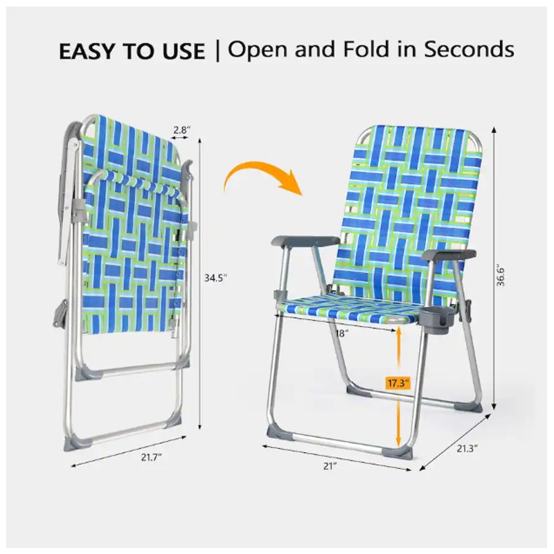 Vingli 36in Portable Folding Aluminum Beach Chair with Cup Holder - Blue & Green
