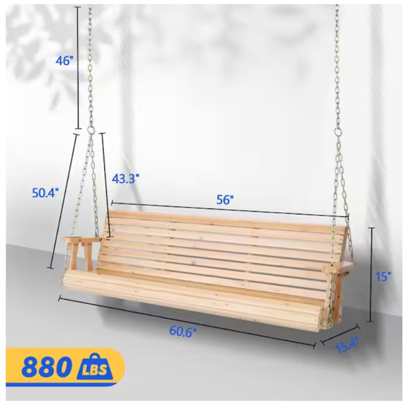 All-weather conditions with the high-quality cedar wood and well-coated finish, you can put it outside for a long-time and it will still perform well chains are also stainless for long-time use