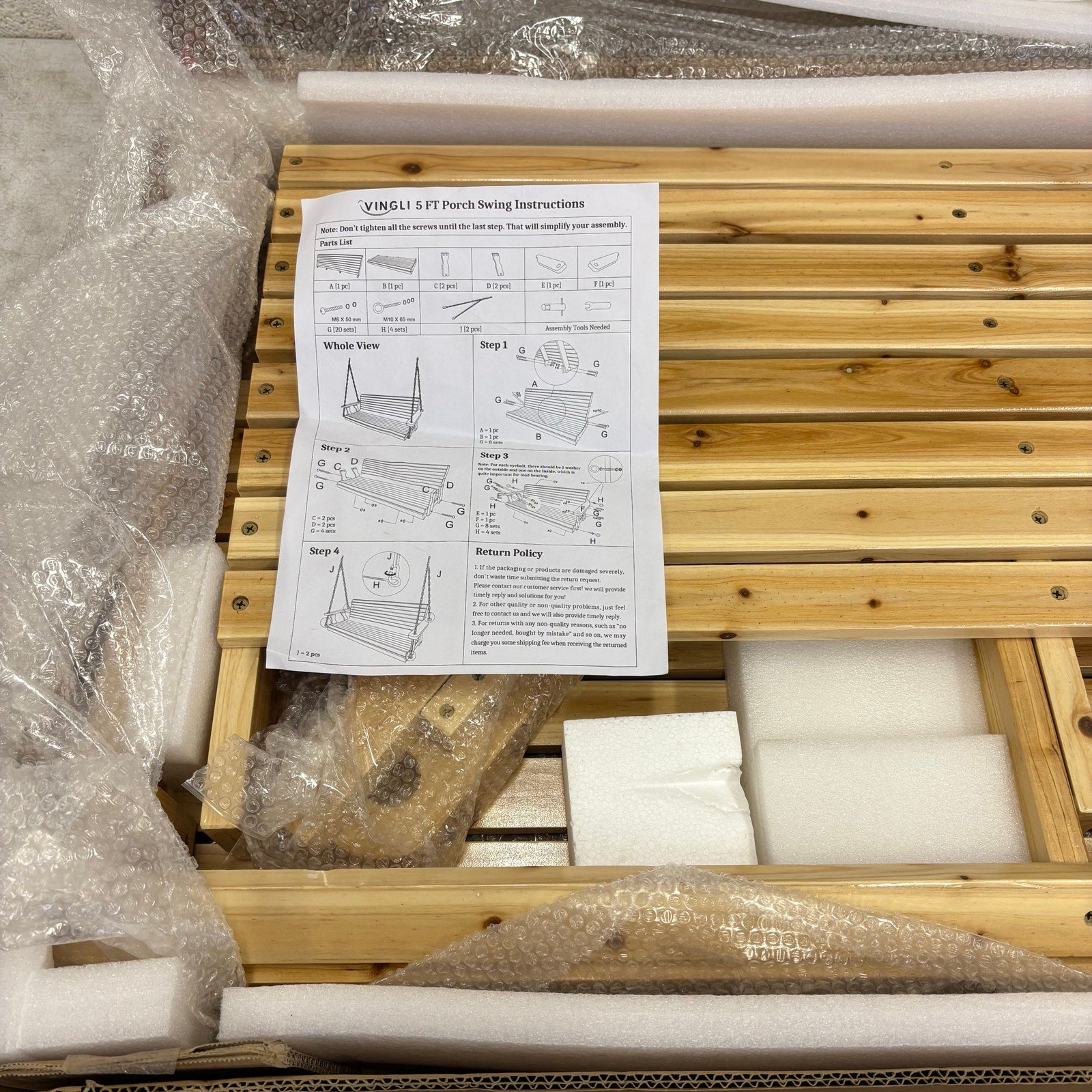 Vingli 5 ft Natural Wood Patio Porch Swing with Adjustable Chains Support 880lbs