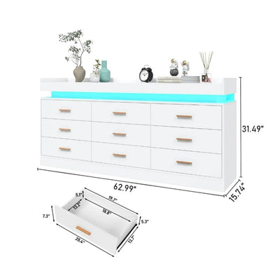 ChVans White Dresser w LED Light & Charging Station, Modern Wood Dresser, READ