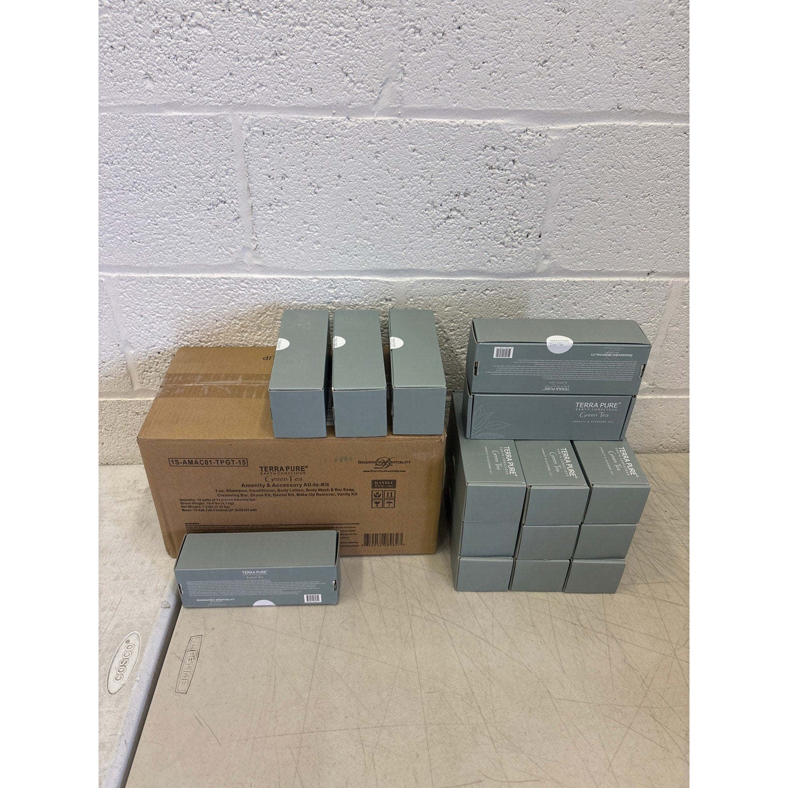 15-PACK Terra Pure Green Tea Amenity & Accessory Kit, Travel Size Bath/Body Kit