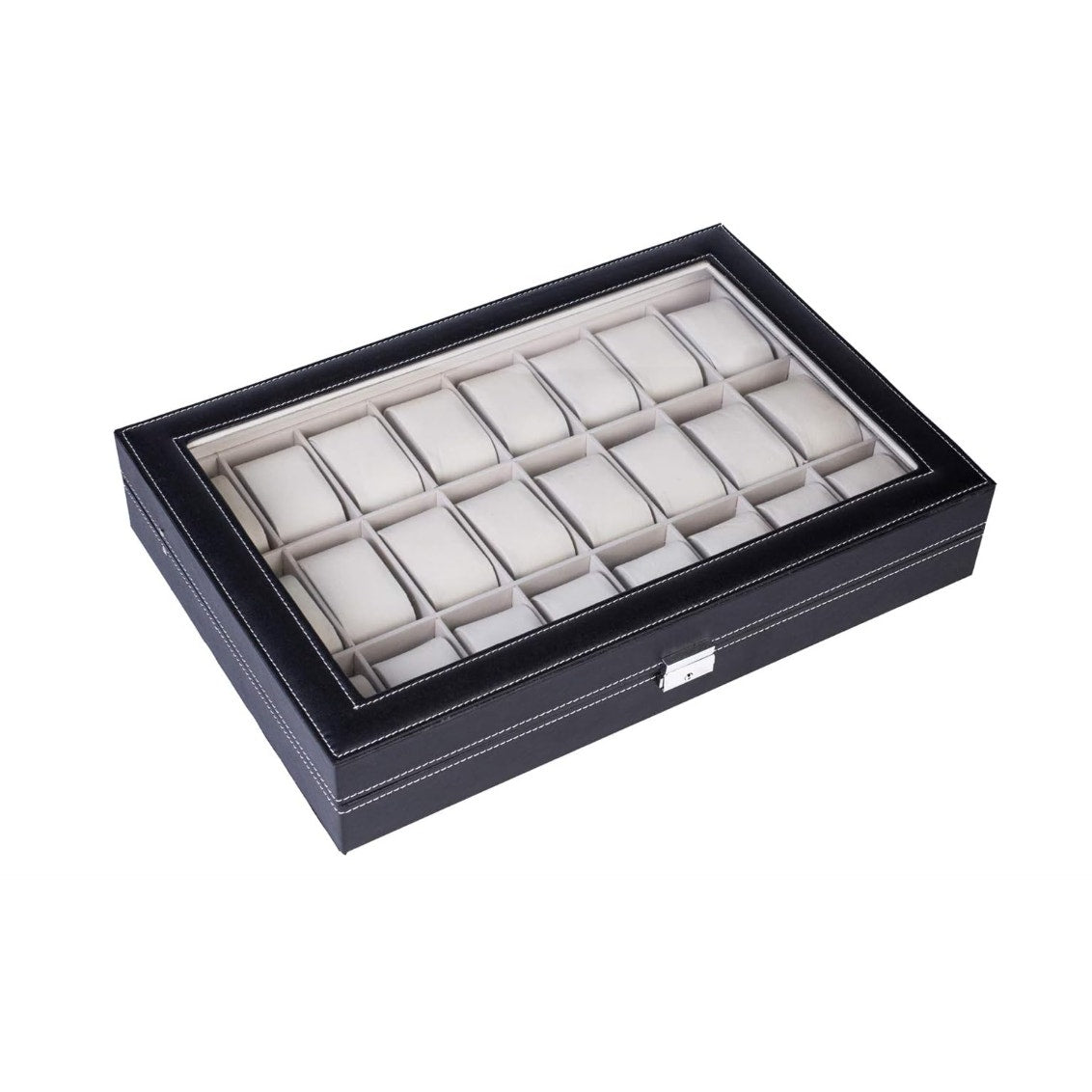 FCH 24-Compartment Watch Collection Box Top-level Opening Style Leather - Black