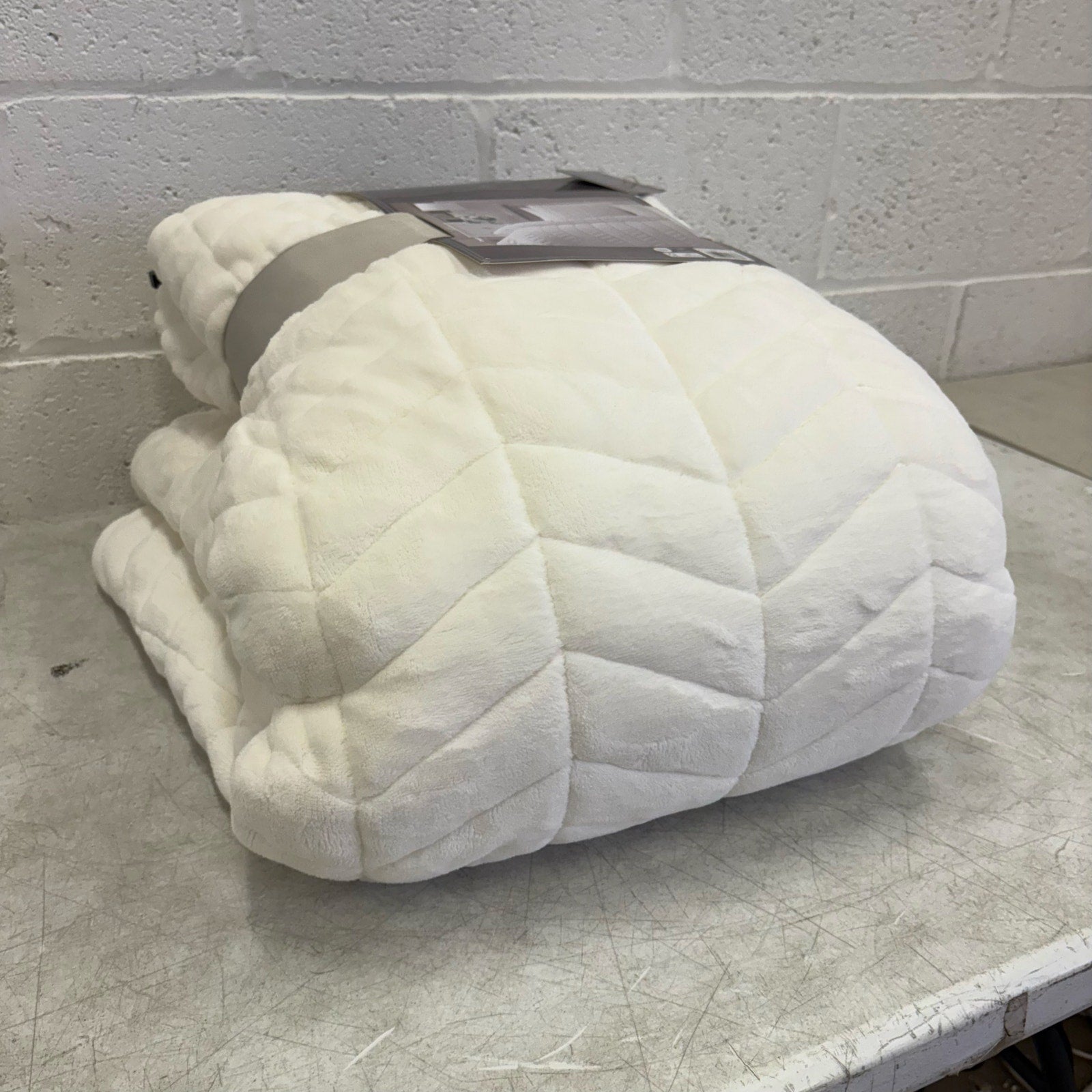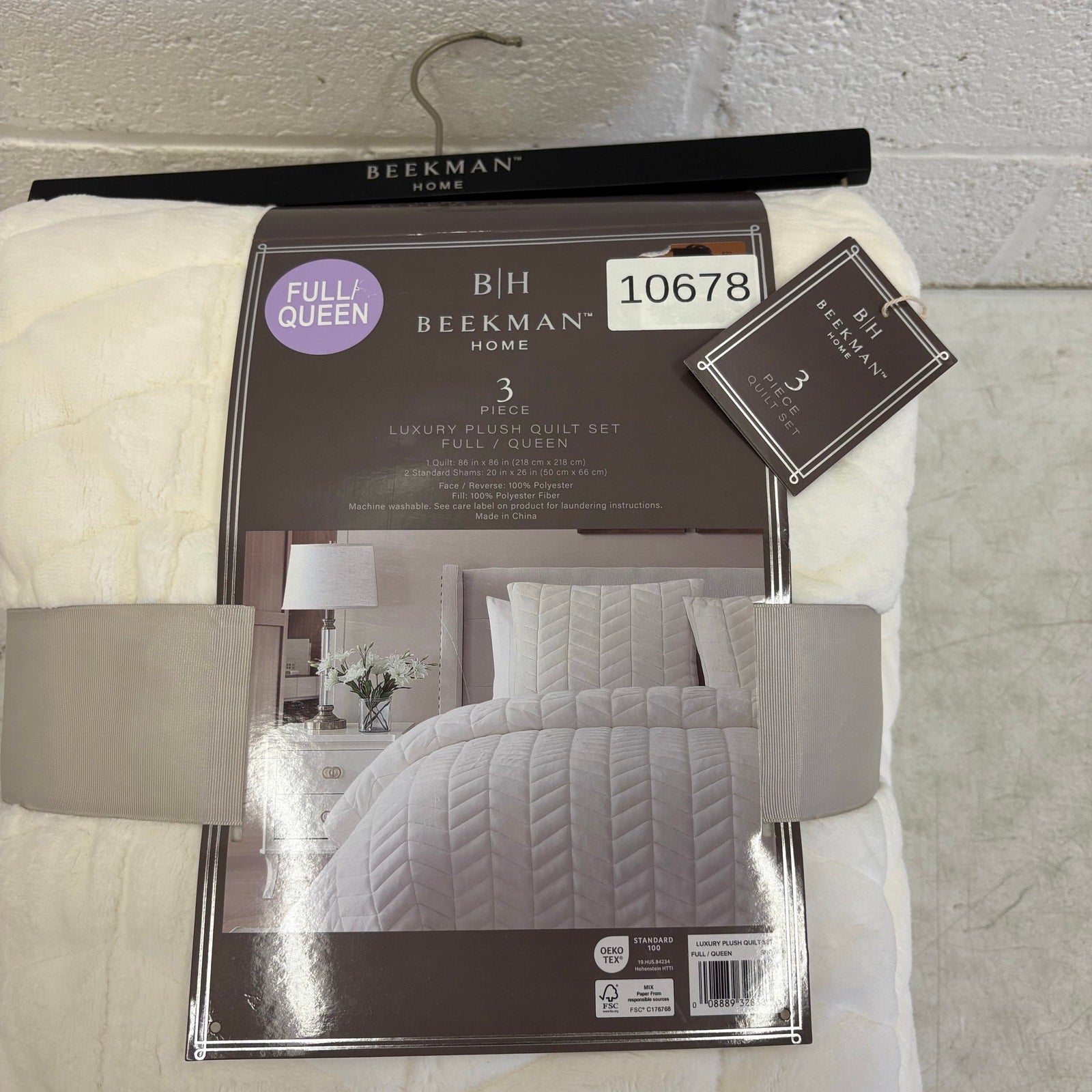 Beekman Home Full/Queen Quilt Set 2 Pillow Shams Plush, Stitching Design - White