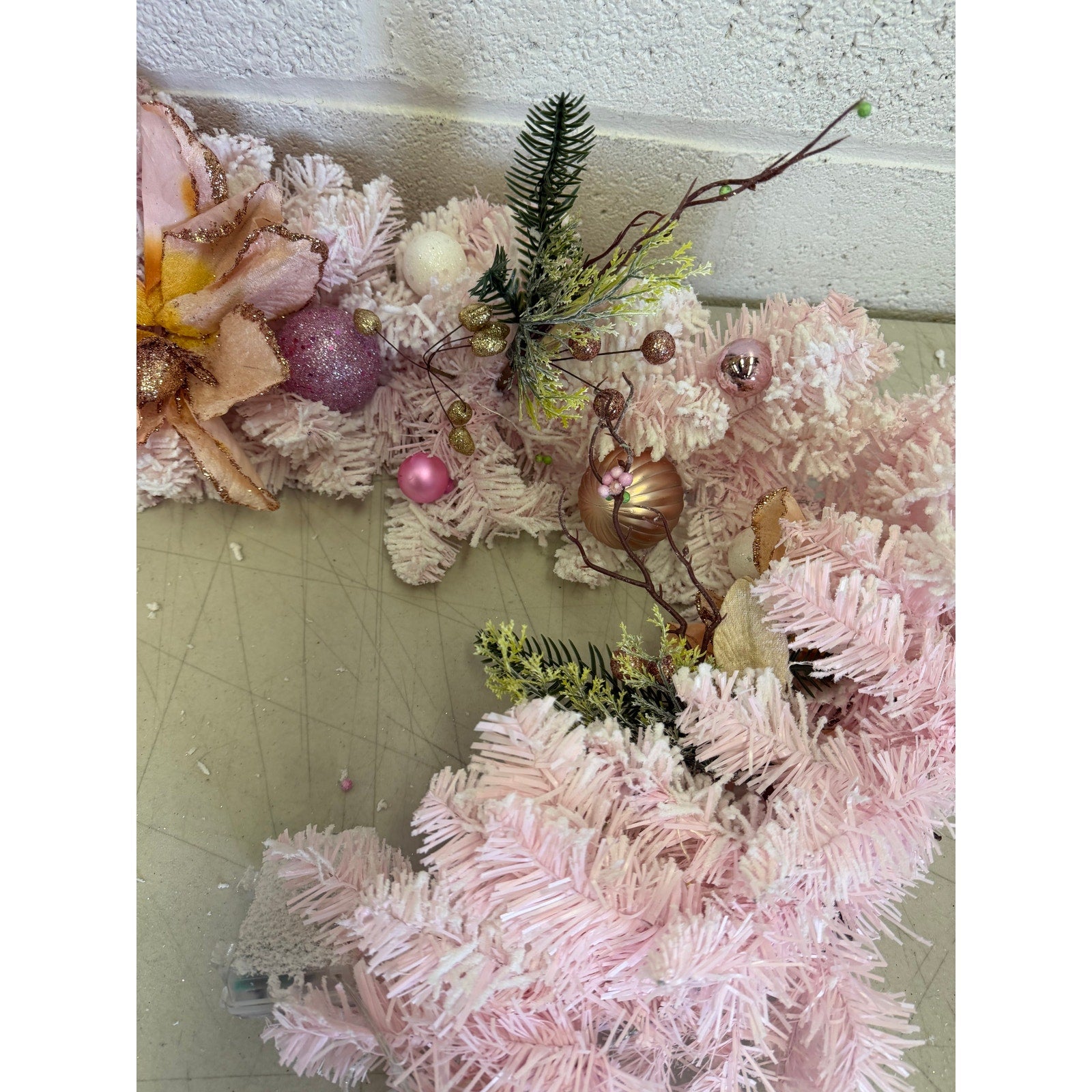CCINEE 5.9ft Pink Artificial Christmas Garland, Battery Operated w LED lights
