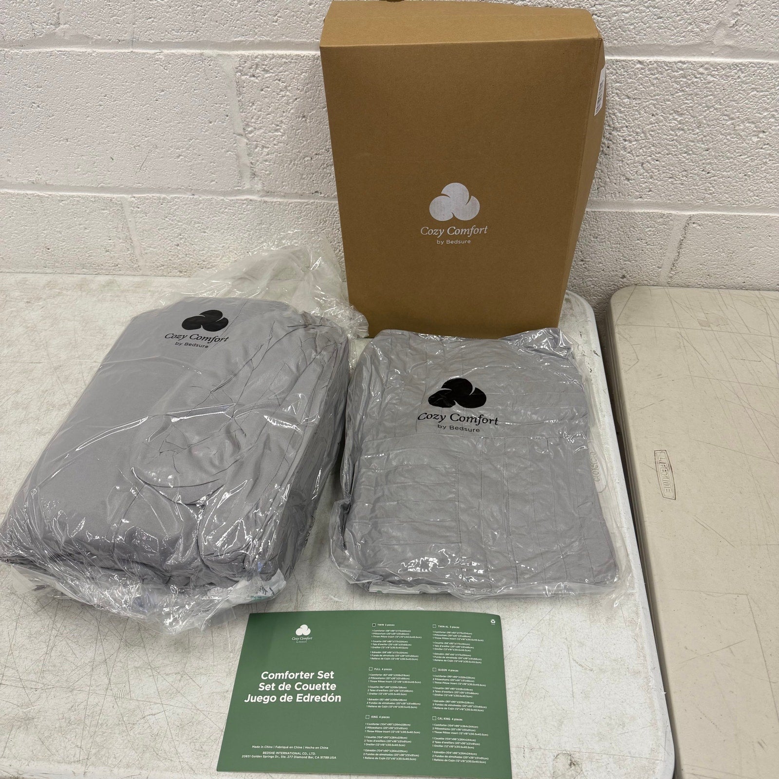 Cozy Comfort Twin Comforter Set, 3 Piece Stripe Pleat Bedding Set - Gray