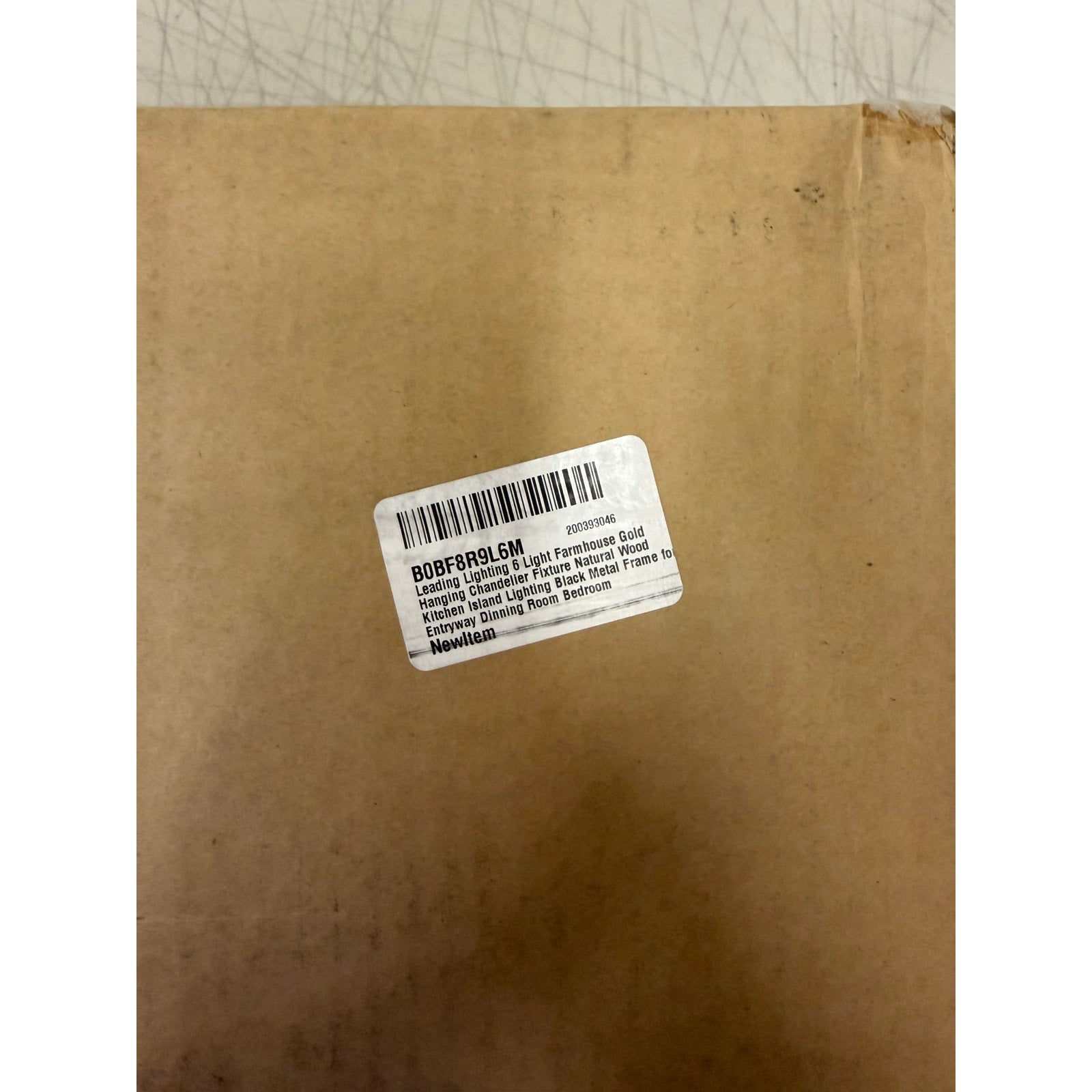 Leading Lighting 6 Light Gold Hanging Chandelier, Natural Wood with Black Frame