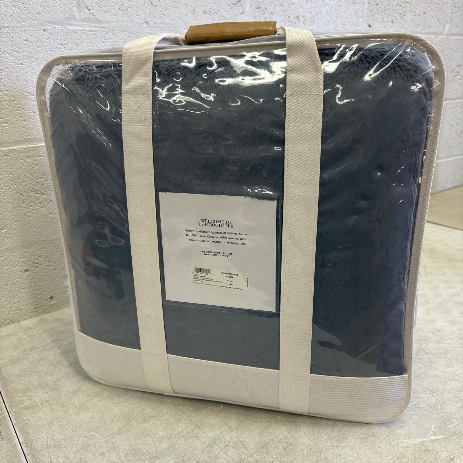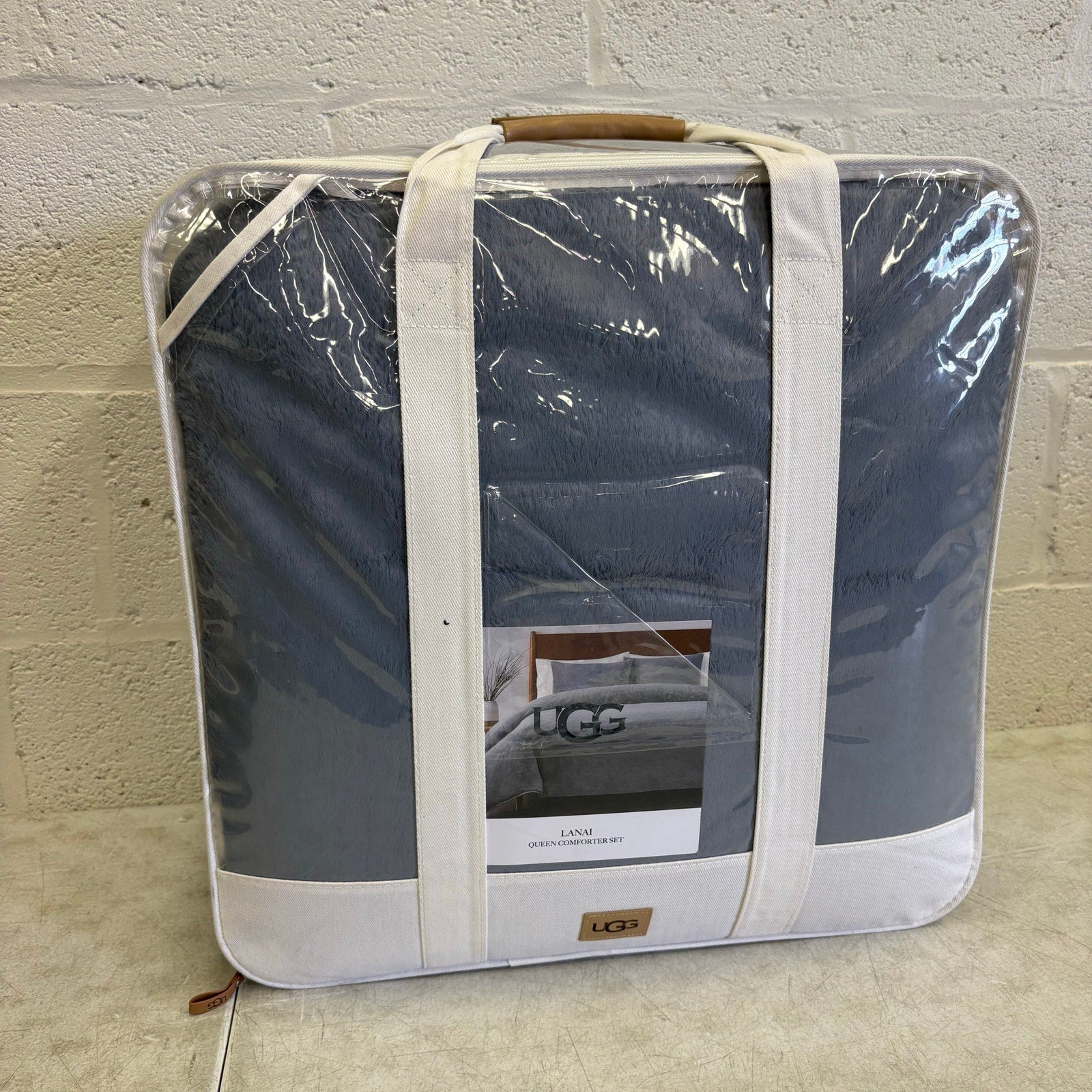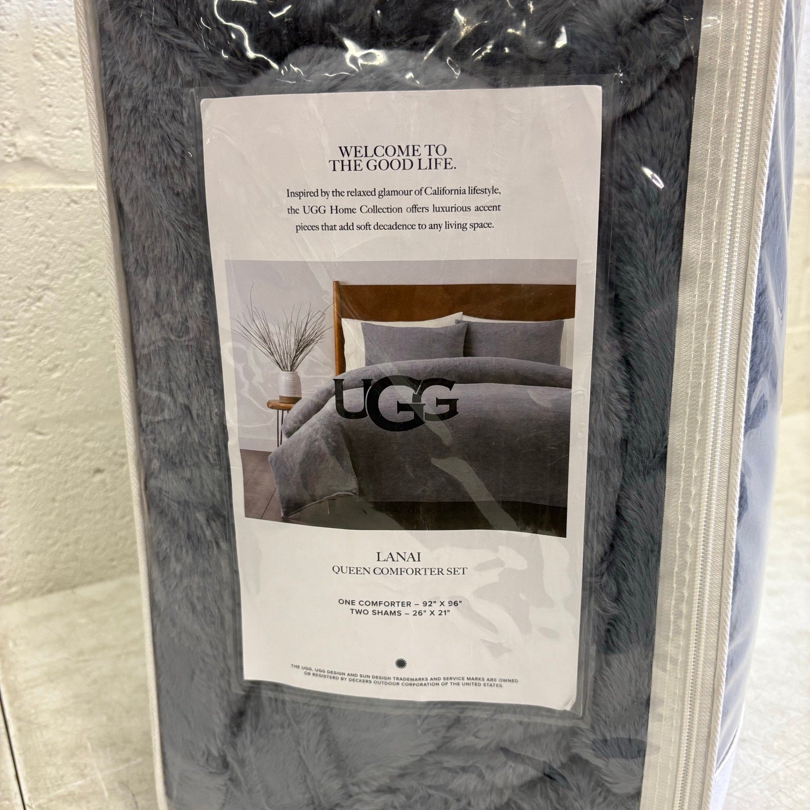UGG Lanai Queen Comforter Set w 2 Shams, Faux Fur Soft Bedding - Chambray