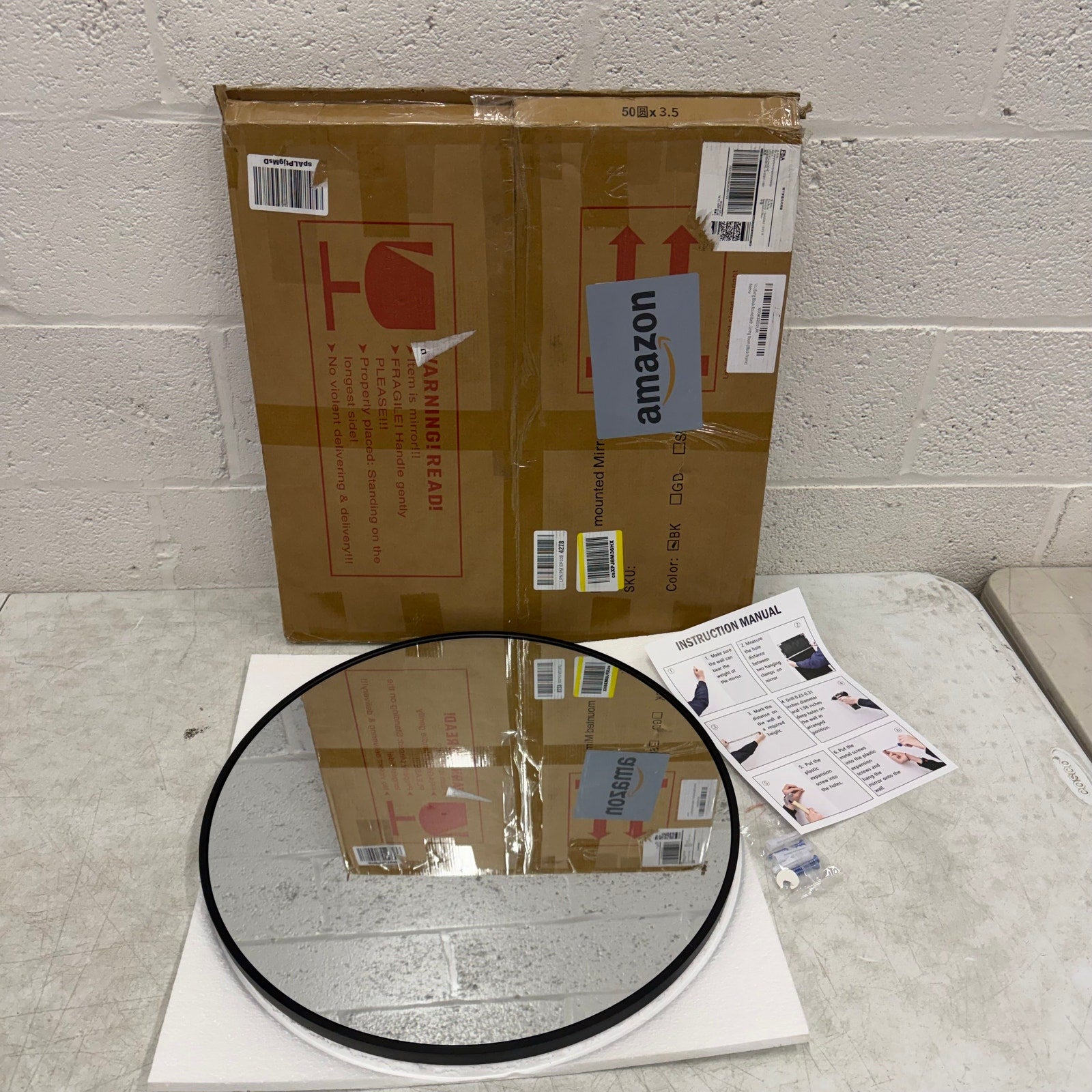 VooBang Round Mirror (20in) Wall Mounted, Simple & Modern, Metal Frame - Black