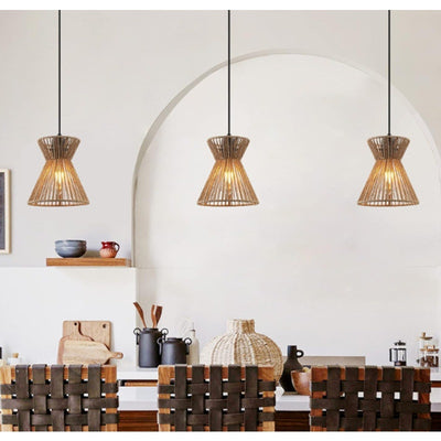 Hummingbird Woven Pendant Light, 7”Hanging Lamp Adjustable Pack of 3 - Tan