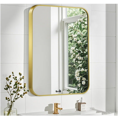 CLBA Matte Gold Mirror 22x30" Rounded Rectangle Aluminum Alloy Framed Vanity
