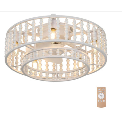 Boho Wood Beaded Ceiling Fan with Light and Remote, 19" Caged Ceiling Fan White