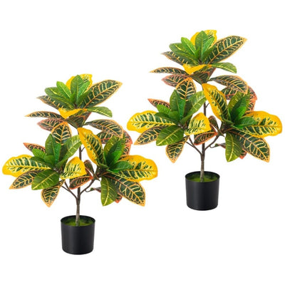 2-Pack Fake Plant Artificial Croton 23.6'' Tall Colorful Leaves Faux Croton Palm