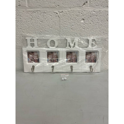 HAUCOZE "HOME" Wall Rack Decor Modern Picture Photo Frame 4 Metal Hooks 17.7"