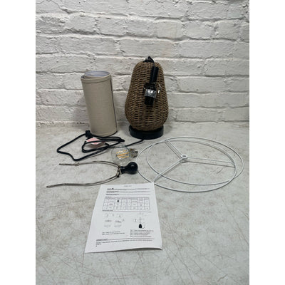 Cinkeda 23.5" USB Table Lamp w Linen Lampshade, Lightbulb Included Brown Rattan
