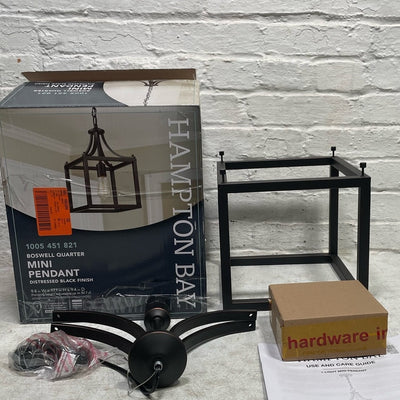 Hampton Bay Boswell Quarter 9-1/2" 1-Light Mini-Pendant Distressed Black
