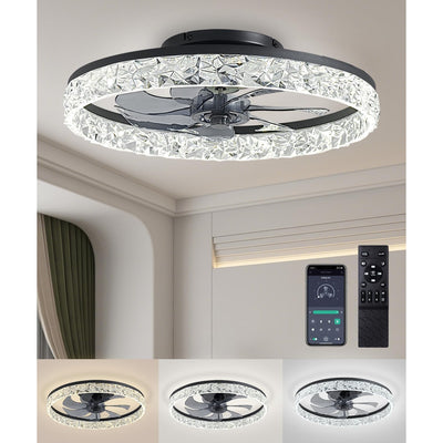 Ceiling Fan with Color-Changing Light; Fandelier, App & Remote (19.7in)- Black