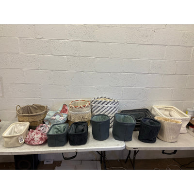 Assortment of 17 Baskets & Storage Bins, Mixed Sizes, Colors, Designs, Shapes