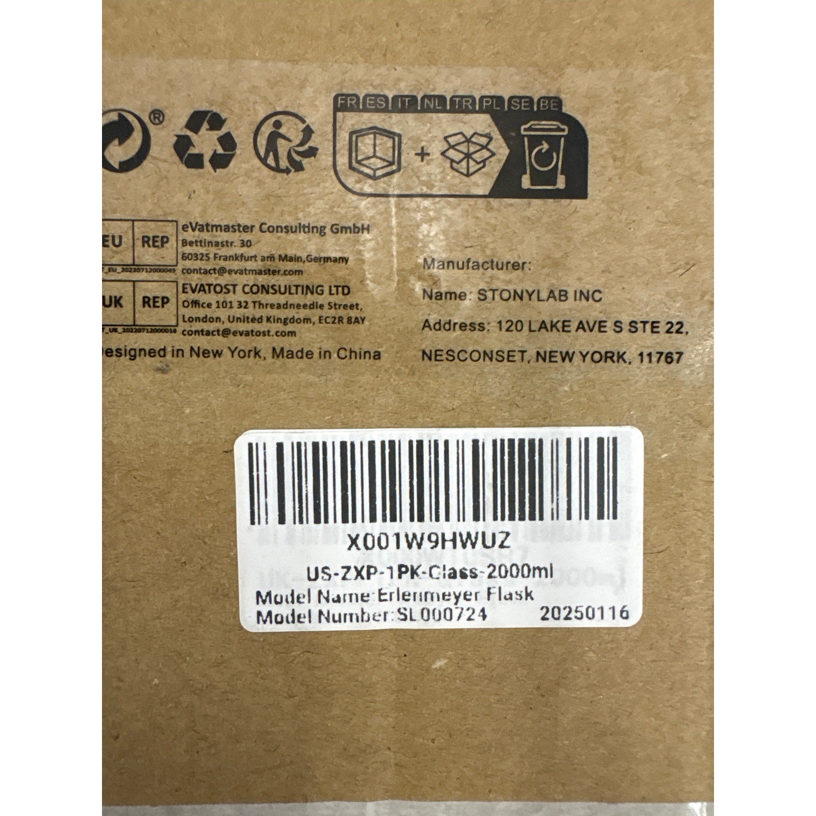 Stonylab Narrow Mouth Erlenmeyer Flask 2000 ml, Science Class Borosilicate Glass