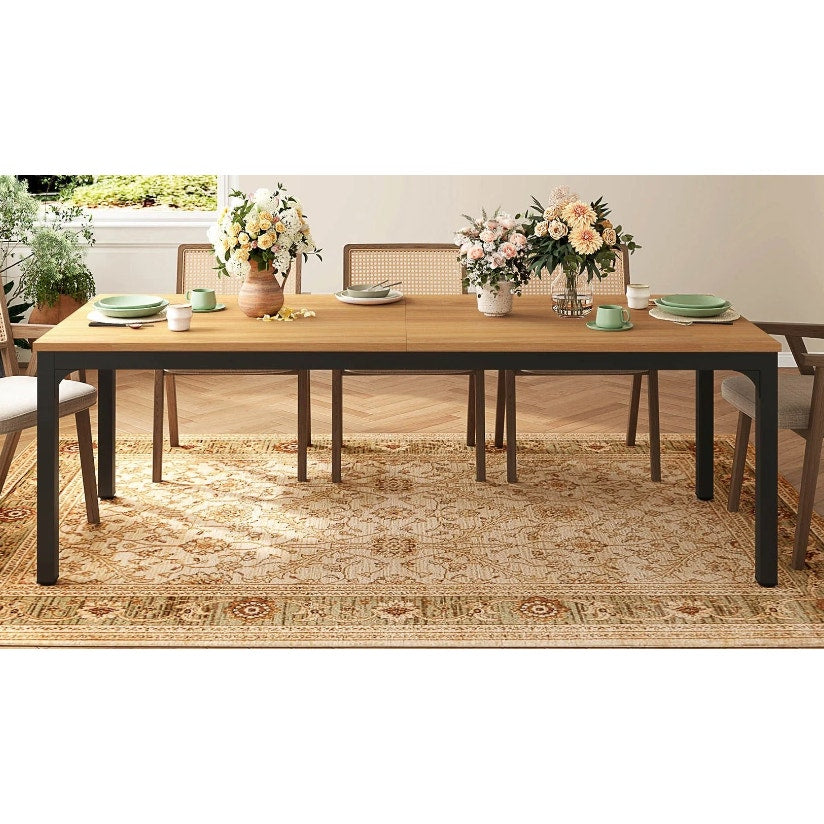Tribesigns Rectangle Dining Table 78" x 28" Kitchen Table 6-8 People Tan/Black
