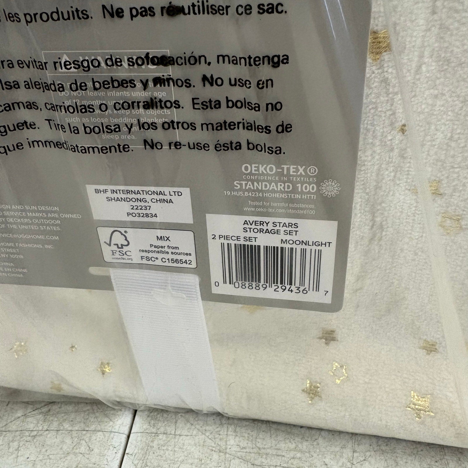 UGG Avery Stars 2-Piece Storage Square Bin & Round Waste Bin, Soft Fuzzy - White
