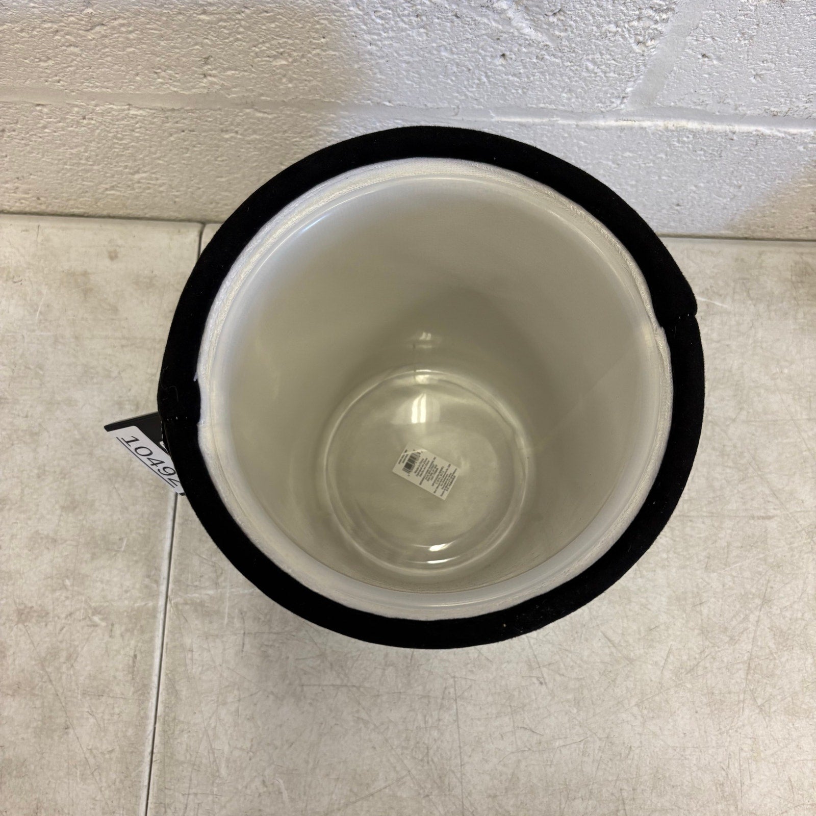 Ugg Avery Waste Bin with Plastic Insert & Soft Outer Cover, 9" x 10.5" - White Ruffled Design with Black Trim