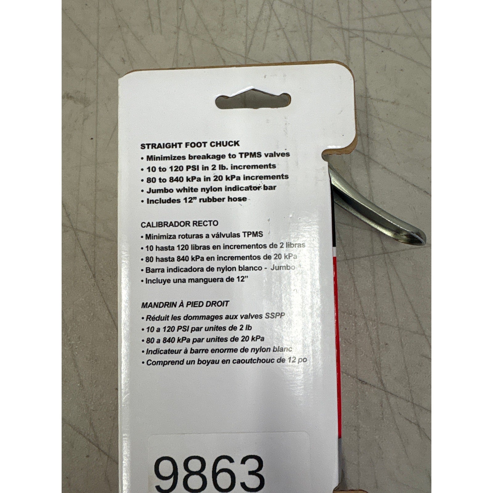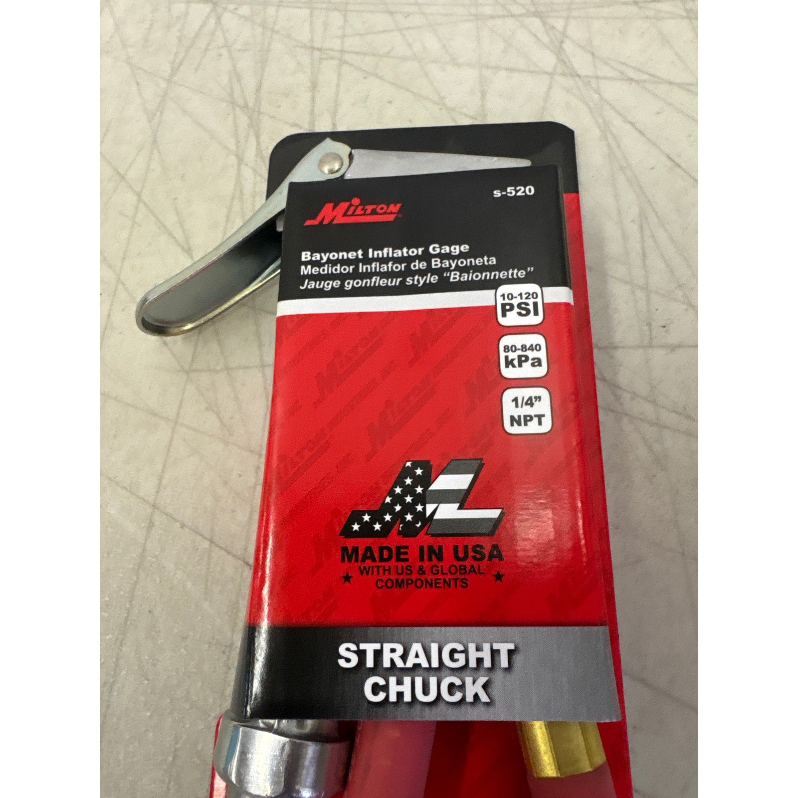 Milton Industries Straight Head Chuck Bayonet Style Inflator Gauge 10-120 PSI
