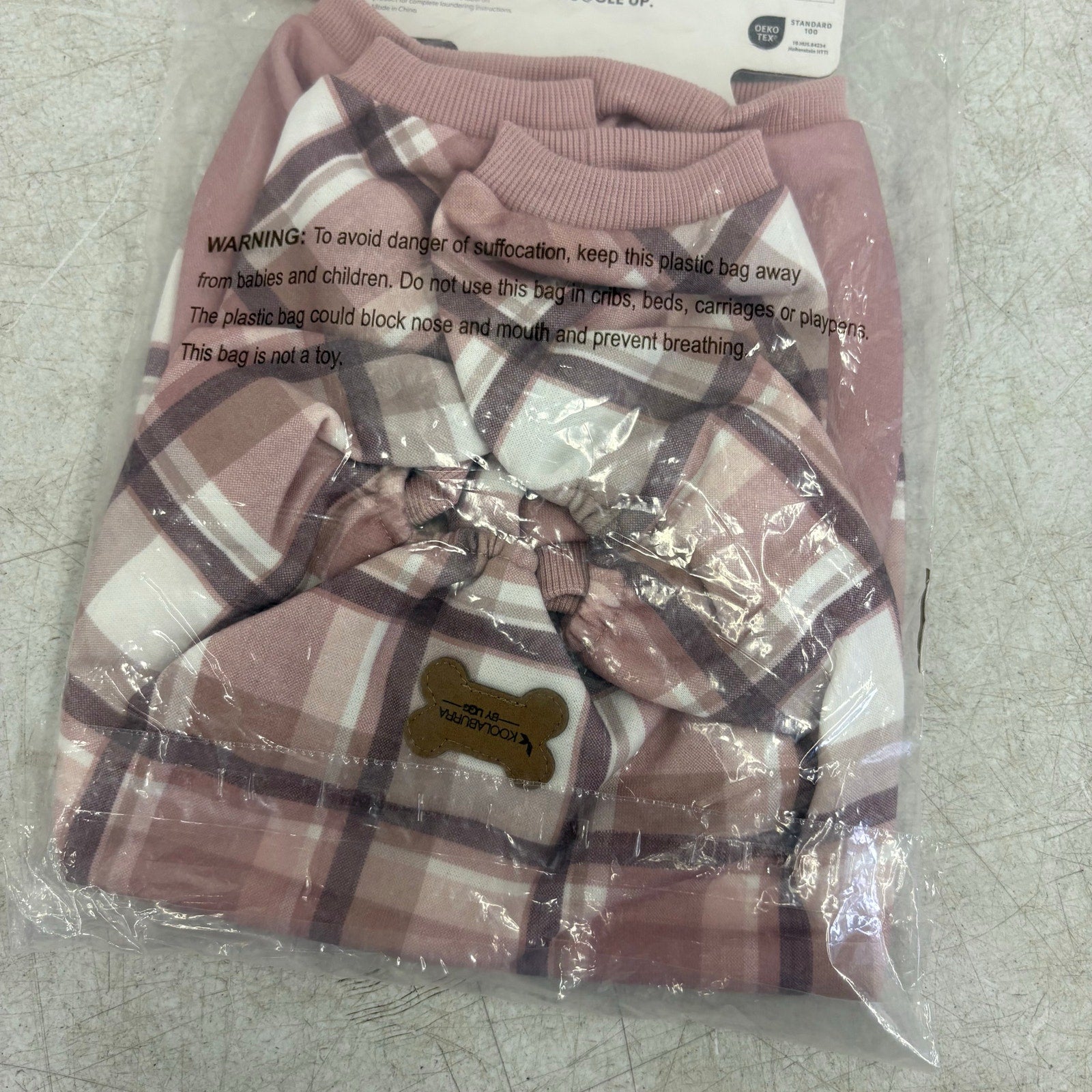 Koolaburra UGG Pet Jayla 1-Pc Pajama Sweater Dog 15-16"Collar Pink Plaid Medium