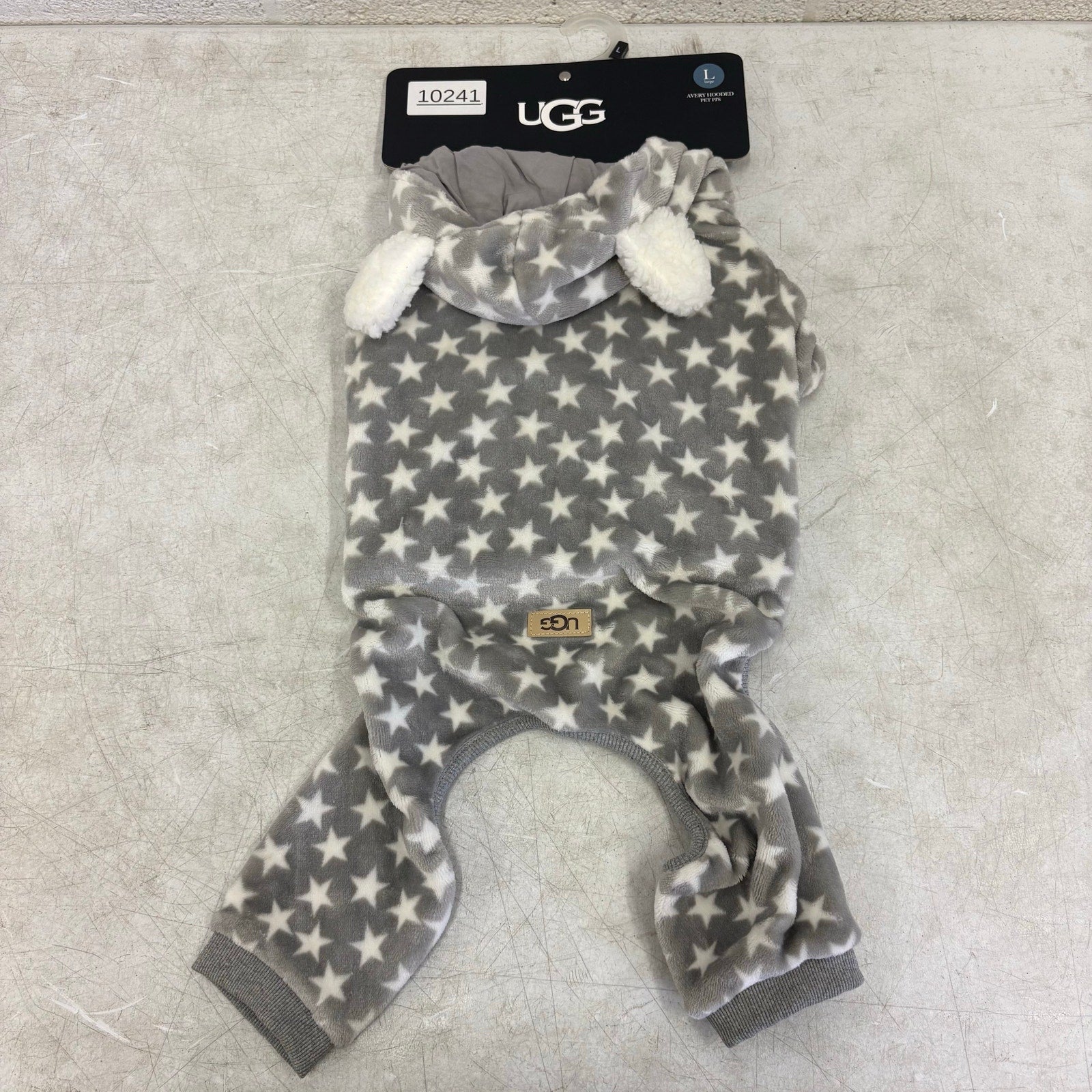 UGG Avery Large Glacier Gray Stars Hooded Soft Dog Pajama - 14-16" Collar