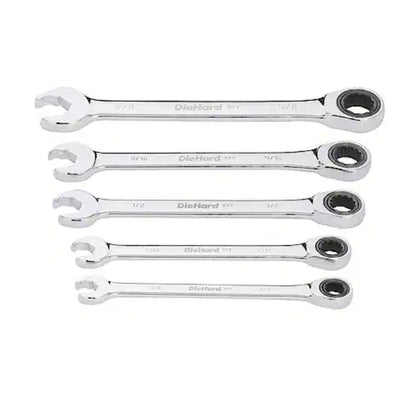 DieHard Ratcheting Wrench Set, SAE, 5-Piece, 12 Point, 3/8, 7/16, 1/2, 9/16, 5/8
