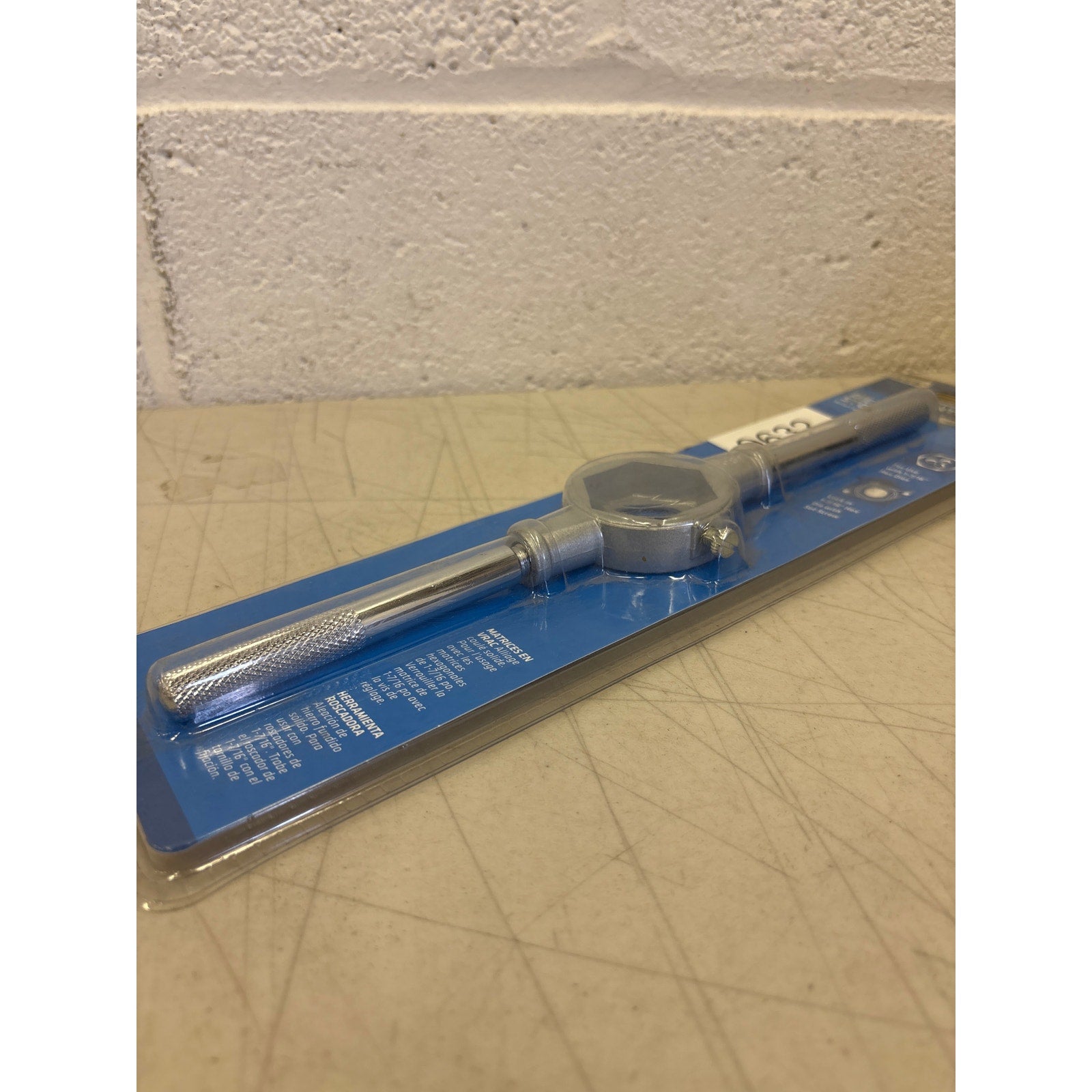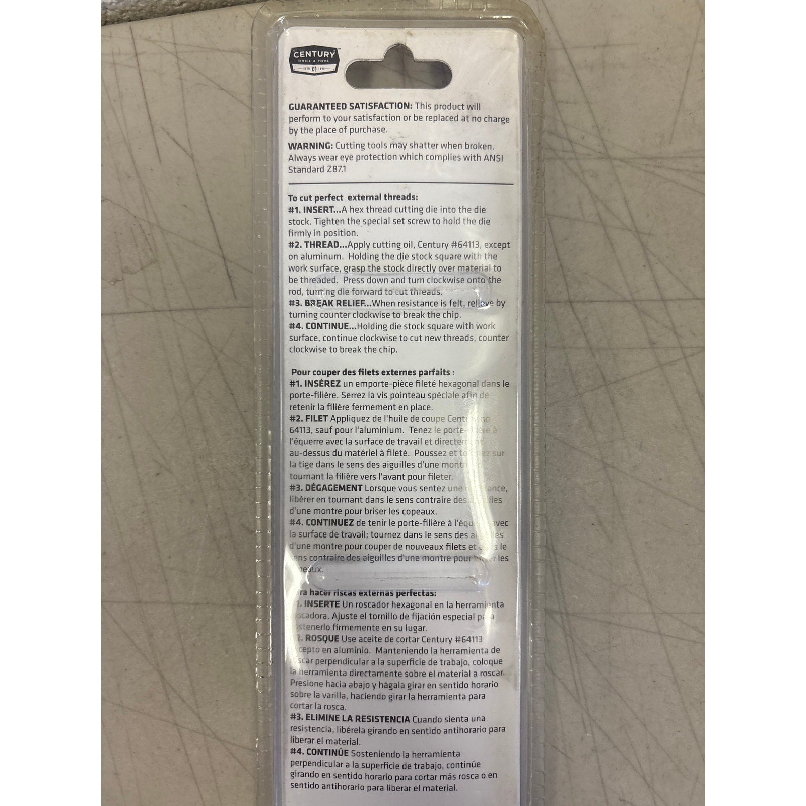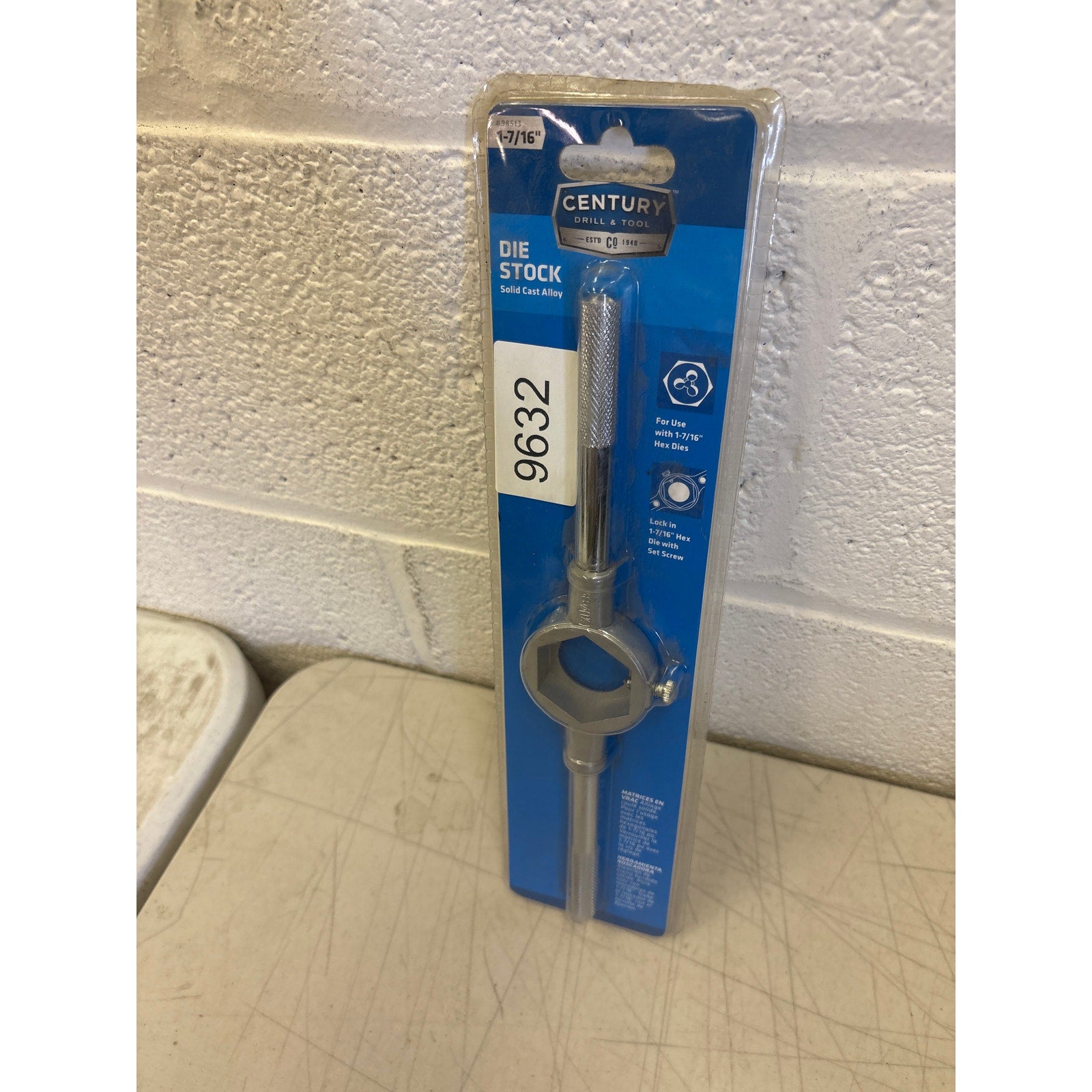 This Century Drill solid die stock is engineered to hold 1-7/16" across the flats hex dies, locking them in place with a single set screw. The zinc alloy construction offers enhanced strength and longevity. This tool ensures equal pressure distribution for precise threading.