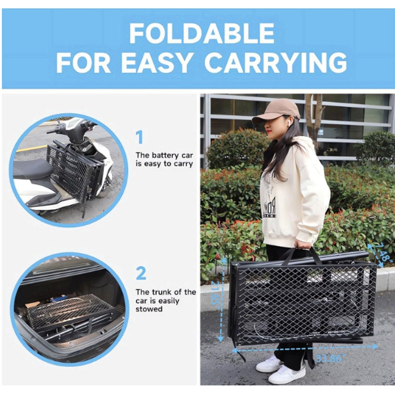 【Small size】15.75"59.06" large grid tread non-slip surface,when folded,the platform becomes a small one whose volume is 36.68"x21.26"x7.87",weighing only 34.61 pounds.It can be carried in the car or stored at home,occupying small space