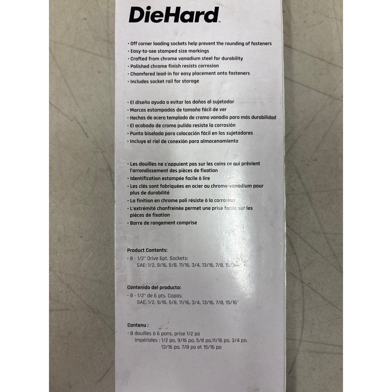DieHard 1/2" Drive 6-Point Socket Set, SAE, 8-Piece, Hand Tools - DHP55250