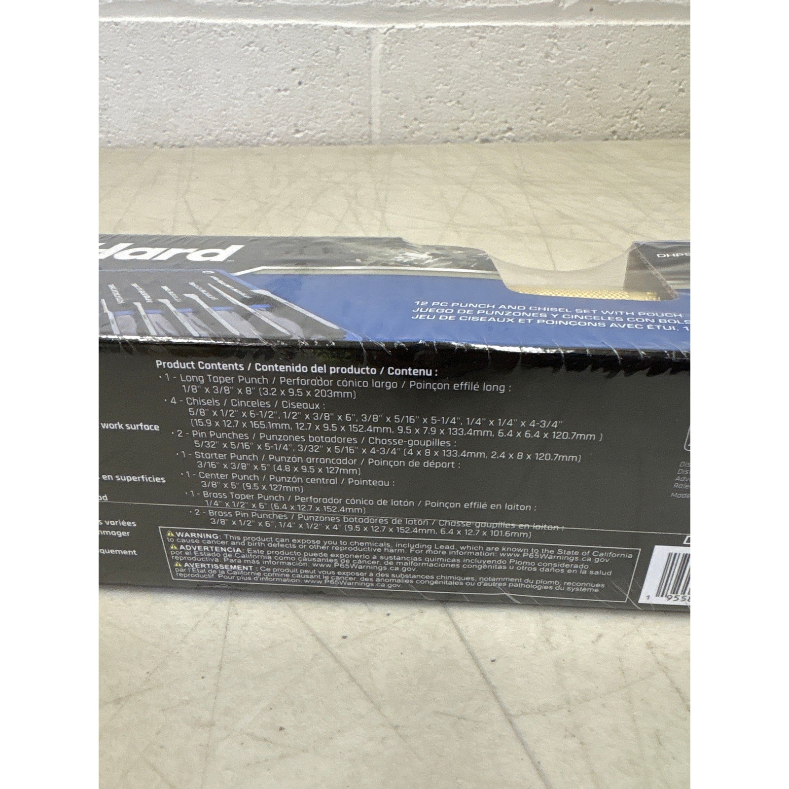 includes: 4 cold chisels, 4 pin punches (including 2 made of brass), 2 taper punches (1 brass), a center punch, and a starter punch.