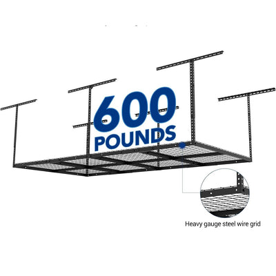 FLEXIMOUNTS Overhead Garage Storage Rack, 3ft x 8ft Adjustable Height, READ