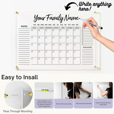 12" X 12" Guardmate Acrylic Wall Calendar Clear Calendar Whiteboard