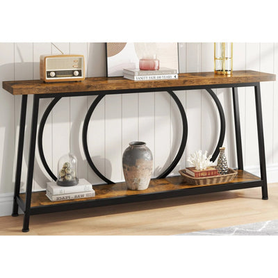 Tribesigns 2-Tier Rustic Console Table 70.9" Sofa Entryway Table Storage Shelves